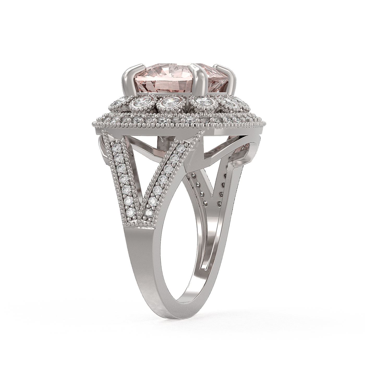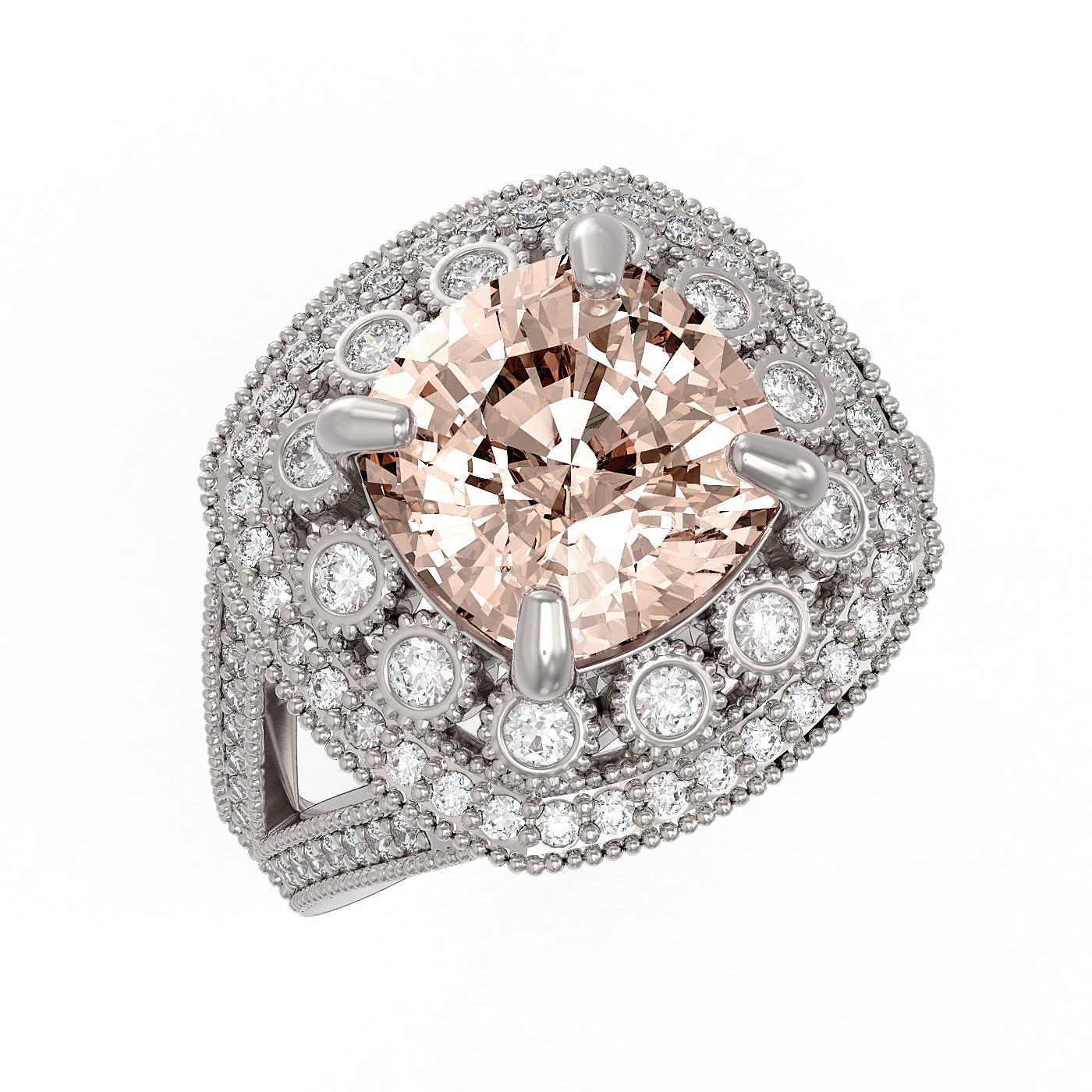 REF-212N4F - SKU: 43949 ---- 5.82 ctw Certified Morganite & Diamond Victorian Ring 14K White Gold
