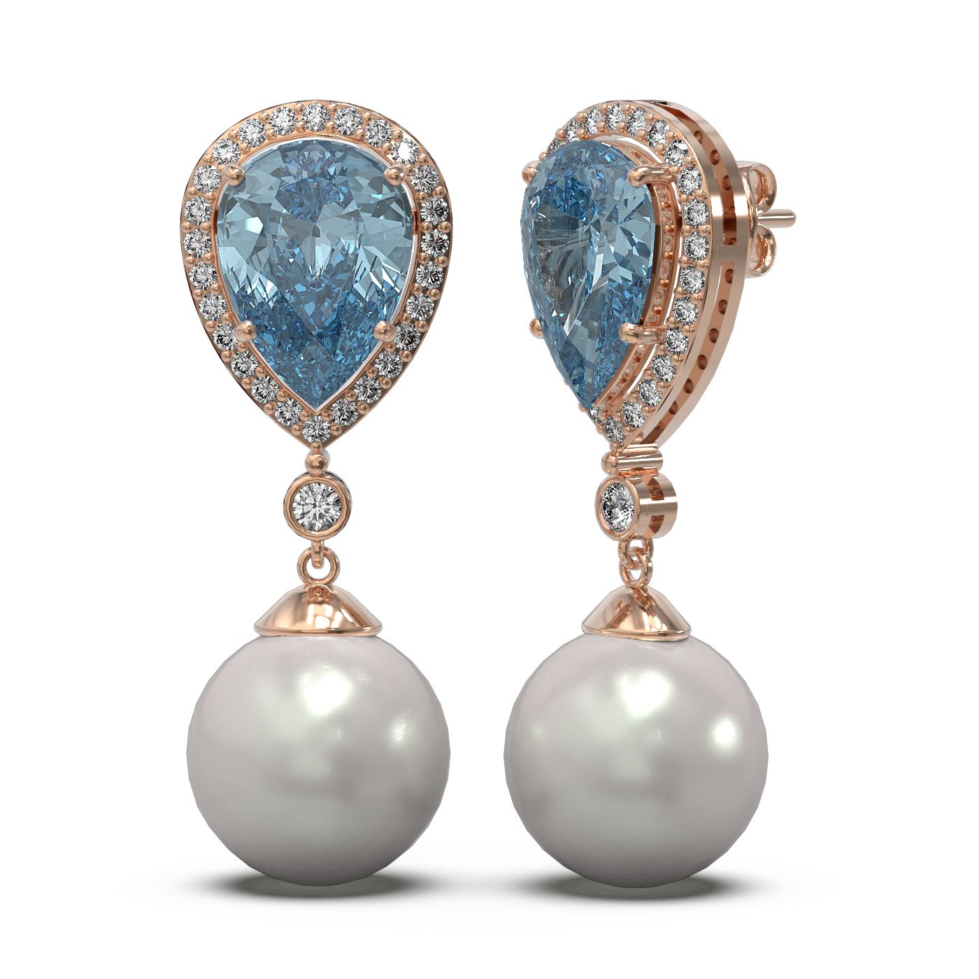 REF-128F2M - SKU: 53339 ---- 5.83 ctw Blue Topaz & Diamond Earrings 18K Rose Gold