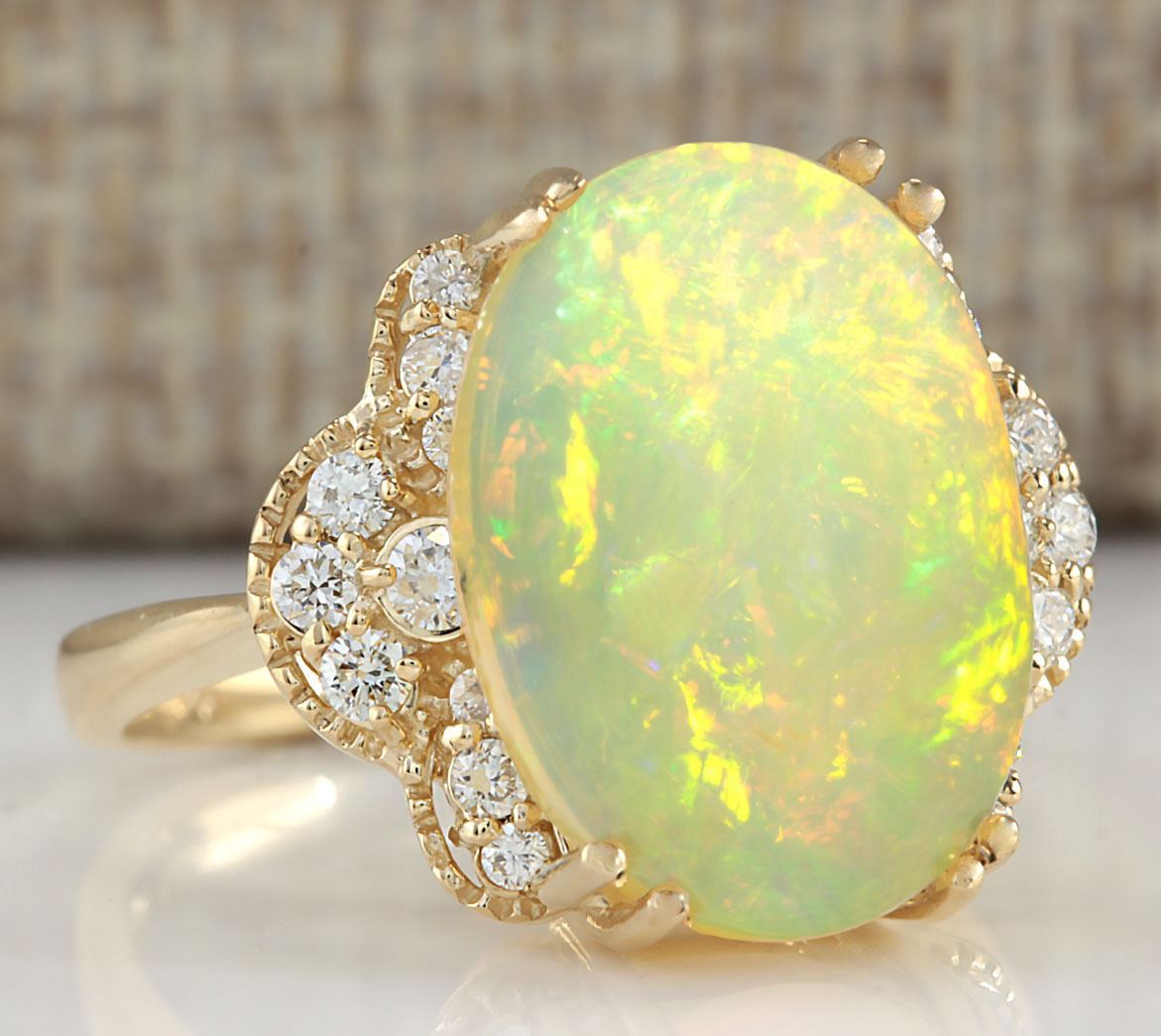 5.84 CTW Natural Opal And Diamond Ring In 18K Yellow Gold