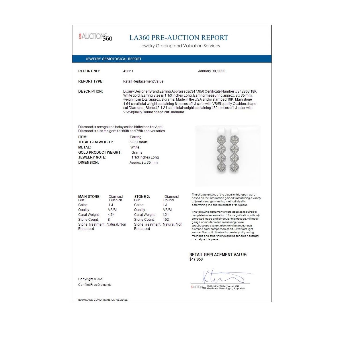 REF-817W6H - SKU: 42863 ---- 5.85 ctw Cushion Cut Diamond Micro Pave Earrings 18K White Gold