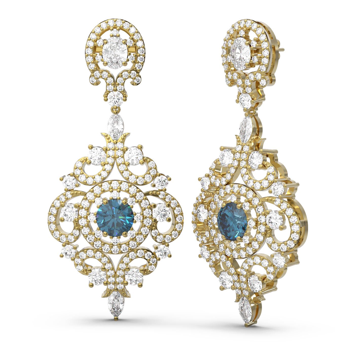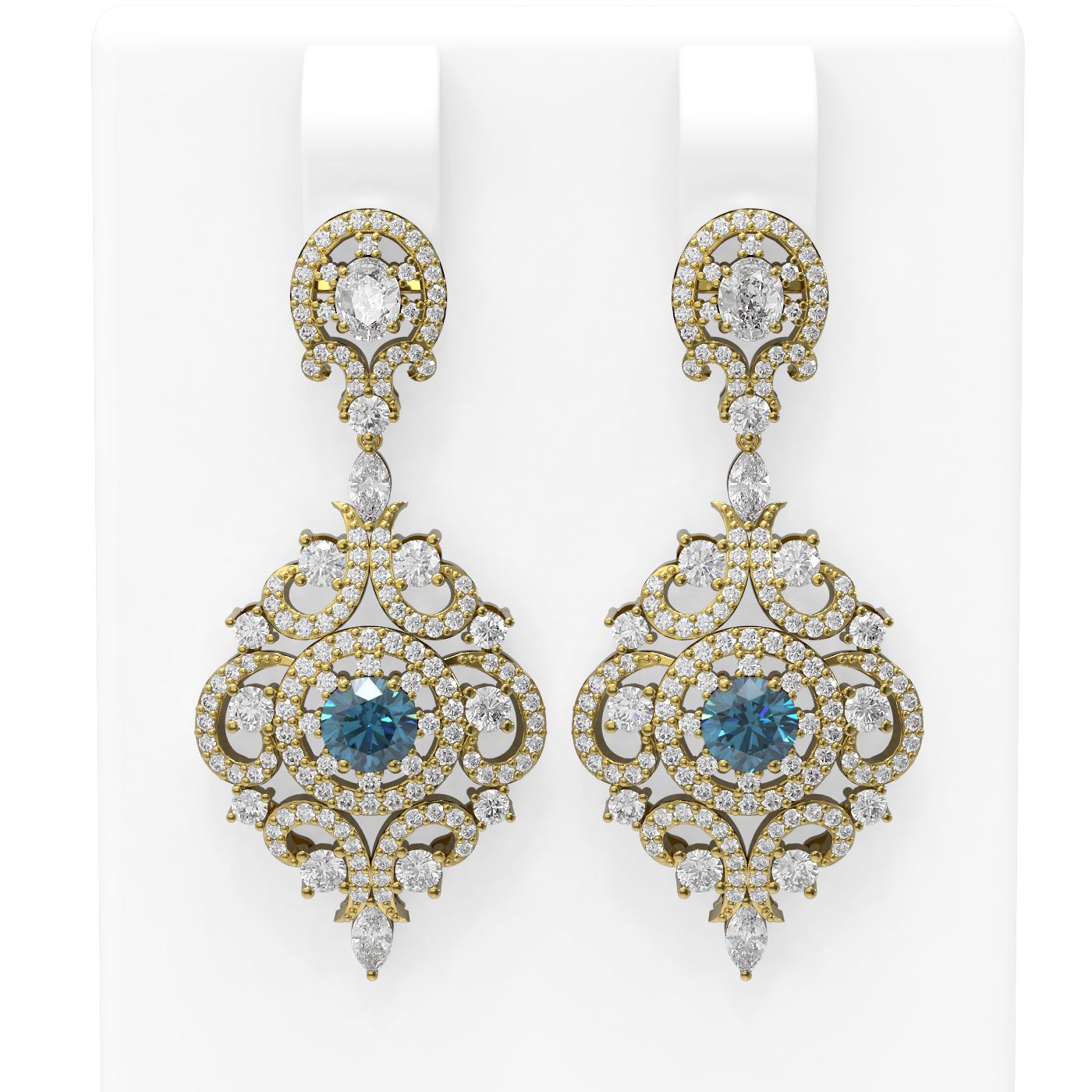 5.85 ctw Intense Blue Diamond Earrings 18K Yellow Gold