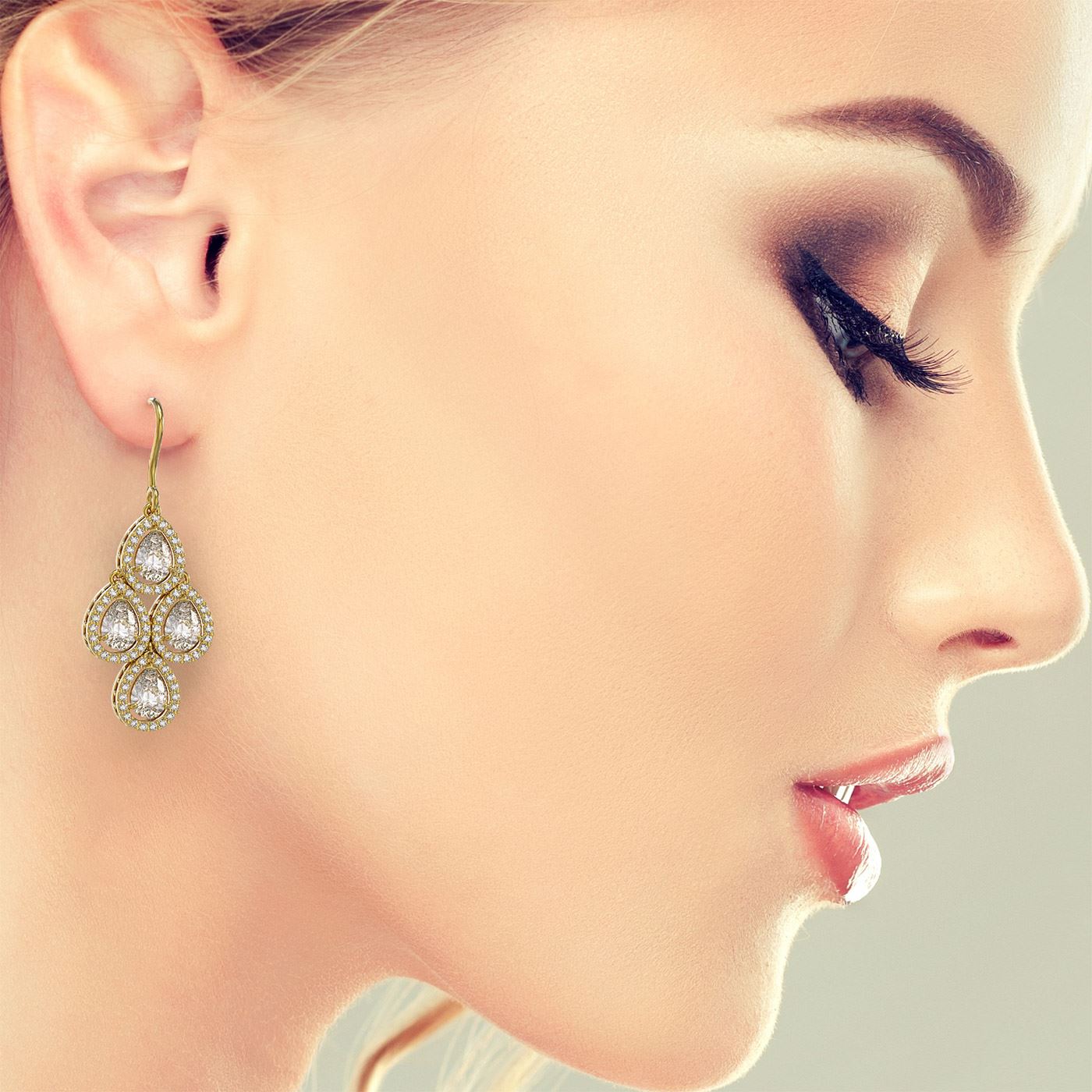 SKU: 42829 ---- 5.85 ctw Pear Cut Diamond Micro Pave Earrings 18K Yellow Gold