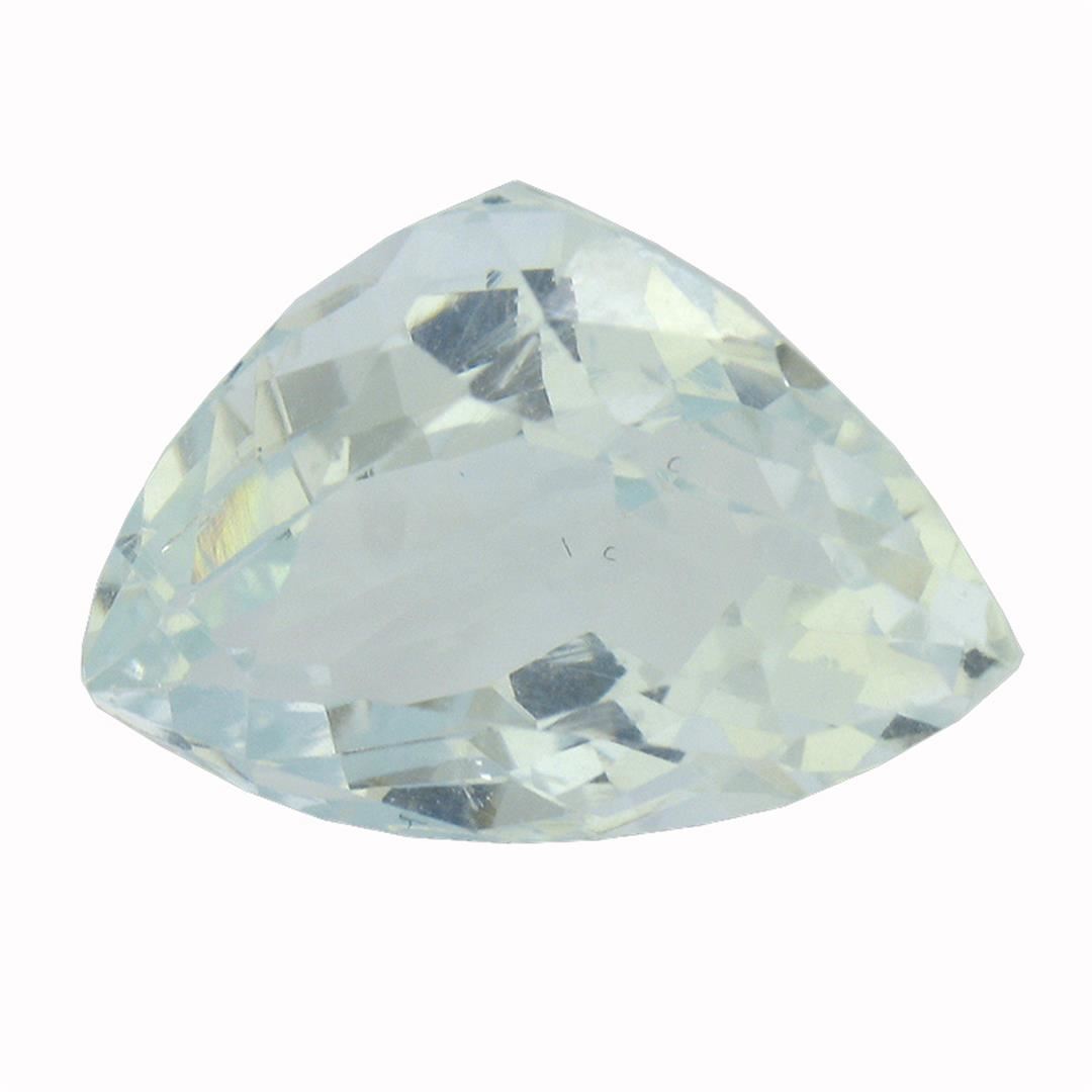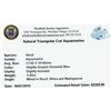 One triangle cut natural aquamarine exact weight 5.85ct., clarity is slightly included, type I, medium, very slightly grayish, very slightly greenish blue color, (GIA vslgB 5/3), cut is good. Westfield Appraised at $2,250.00.