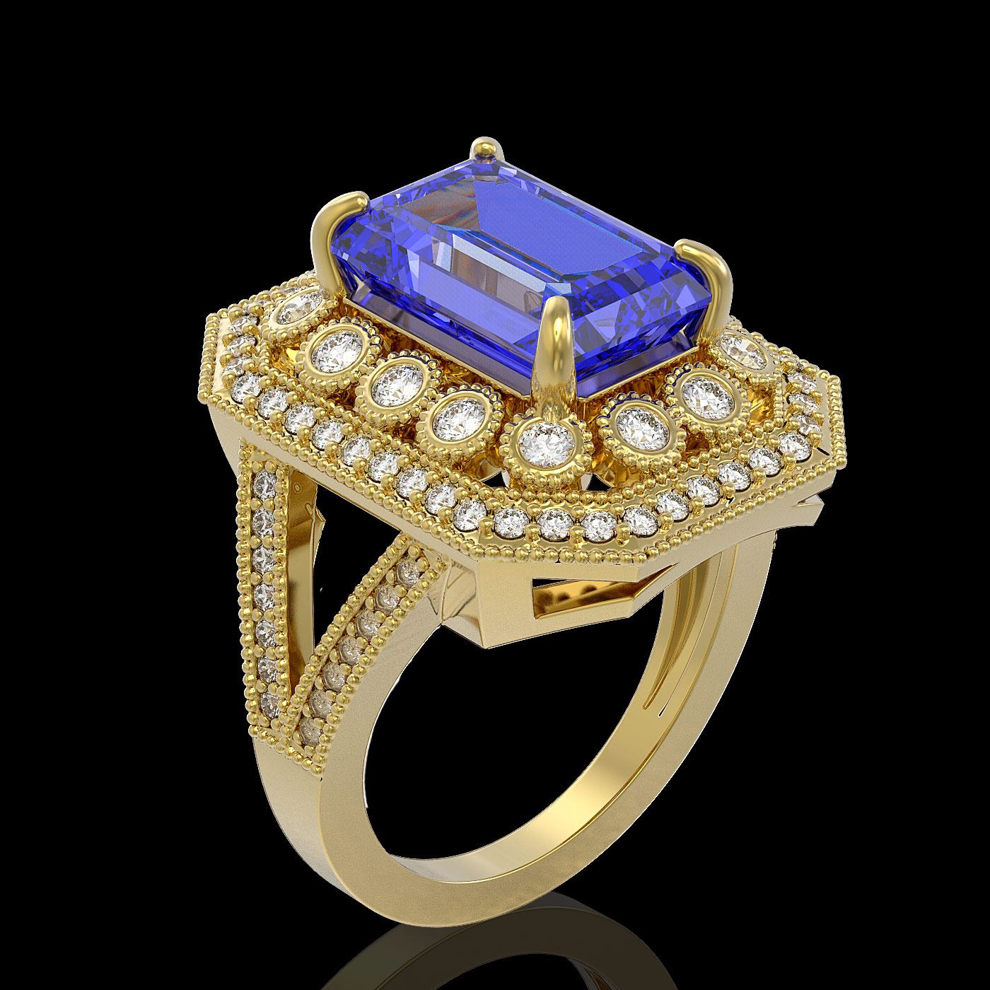 REF-345H5R - SKU: 43375 ---- 5.86 ctw Certified Tanzanite & Diamond Victorian Ring 14K Yellow Gold