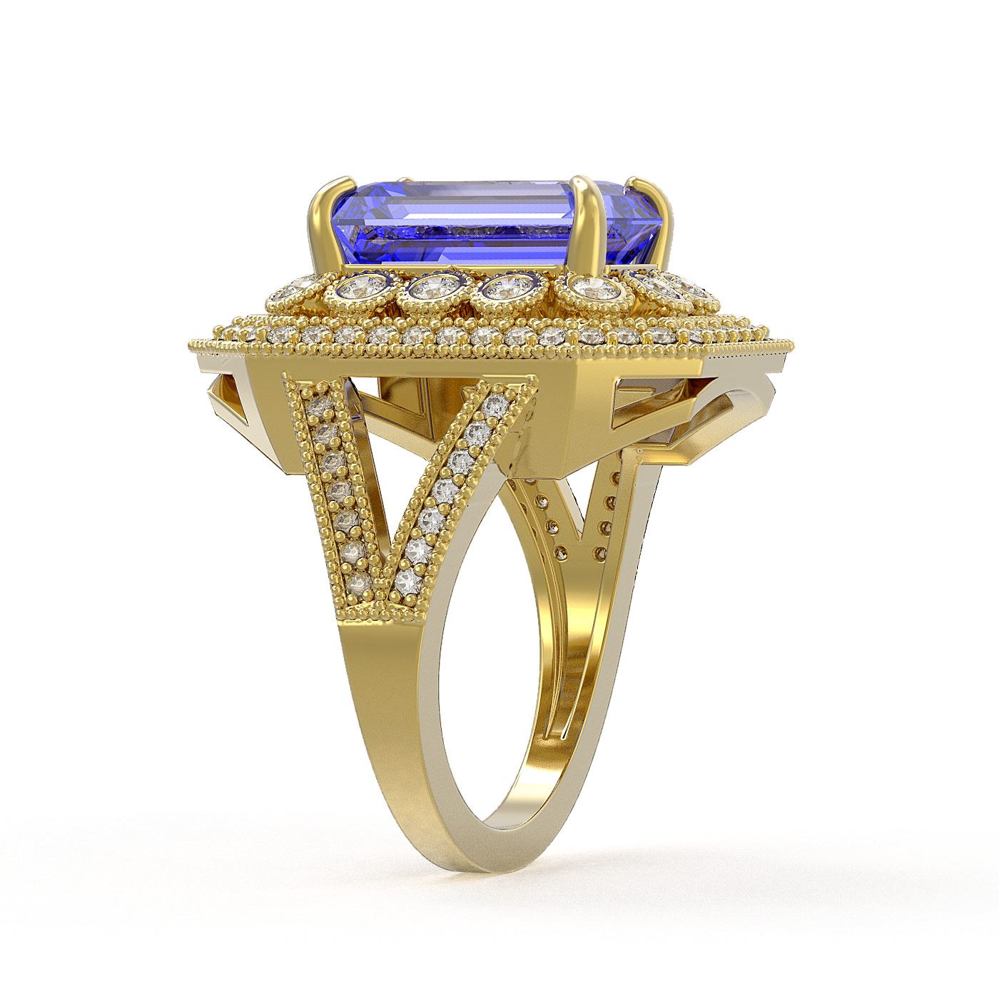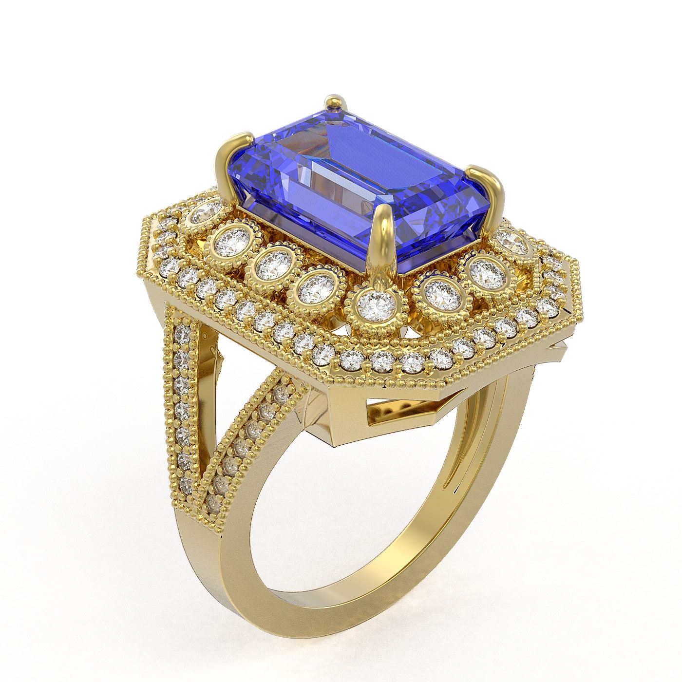 REF-345R5K - SKU: 43375 ---- 5.86 ctw Certified Tanzanite & Diamond Victorian Ring 14K Yellow Gold