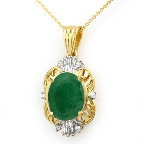 REF-89W3F -13108 ---- 5.88 CTW Emerald & Diamond Pendant 14K Yellow Gold ---- Luxury Designer Brand Pendant Appraised at $5,900 Certificate Number US13108 14k Yellow gold, Pendant Size is 13/16 Inches, Pendant measuring approx. 3/4" x 13/16", weighing in total approx. 3.6 grams. Made in the USA and is stamped 14k, Main stone 5.55 carat total weight containing 1 pieces of Intense Green color with AAA quality Oval shape cut Emerald , Stone #2 0.33 carat total weight containing 12 pieces of H-I color with VS/SI quality Round shape cut Diamond