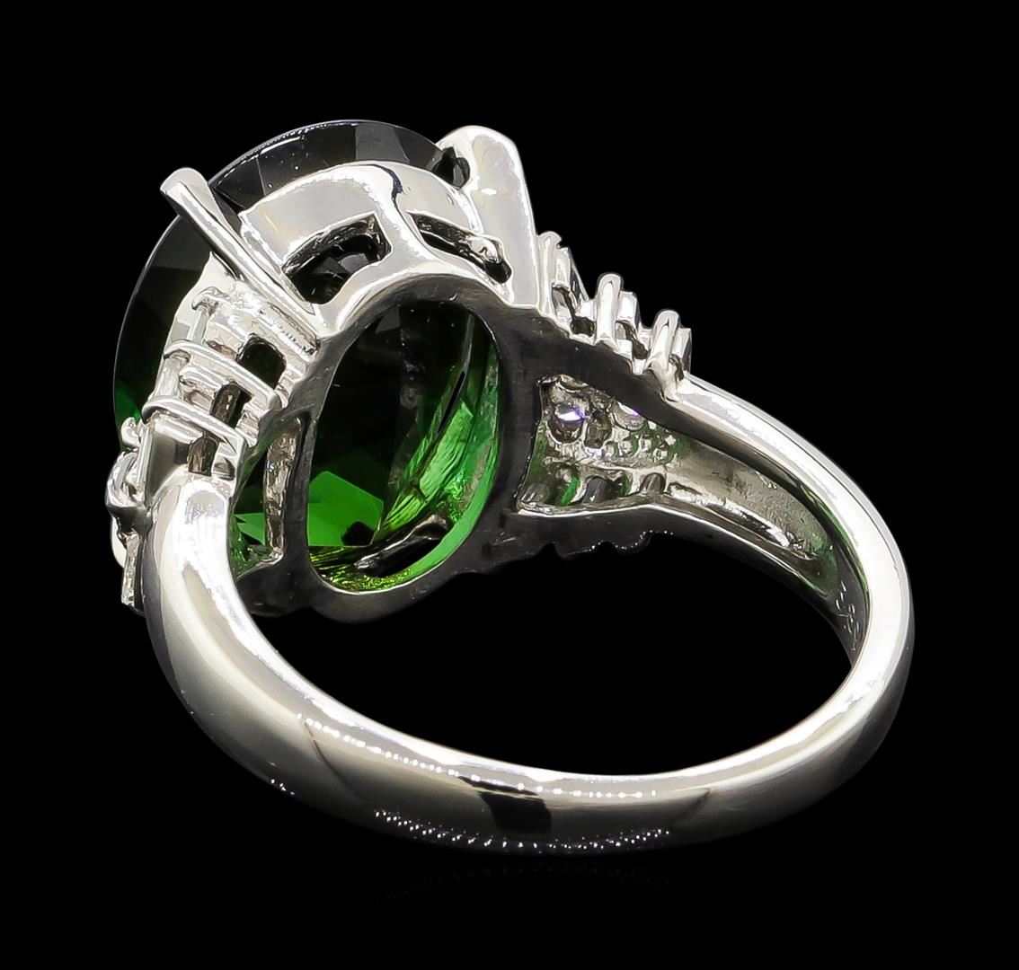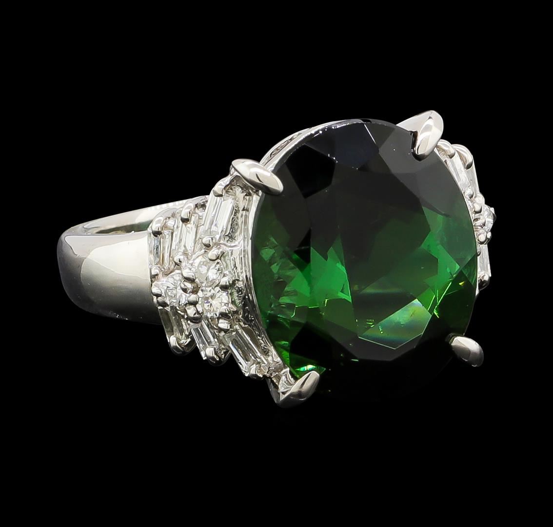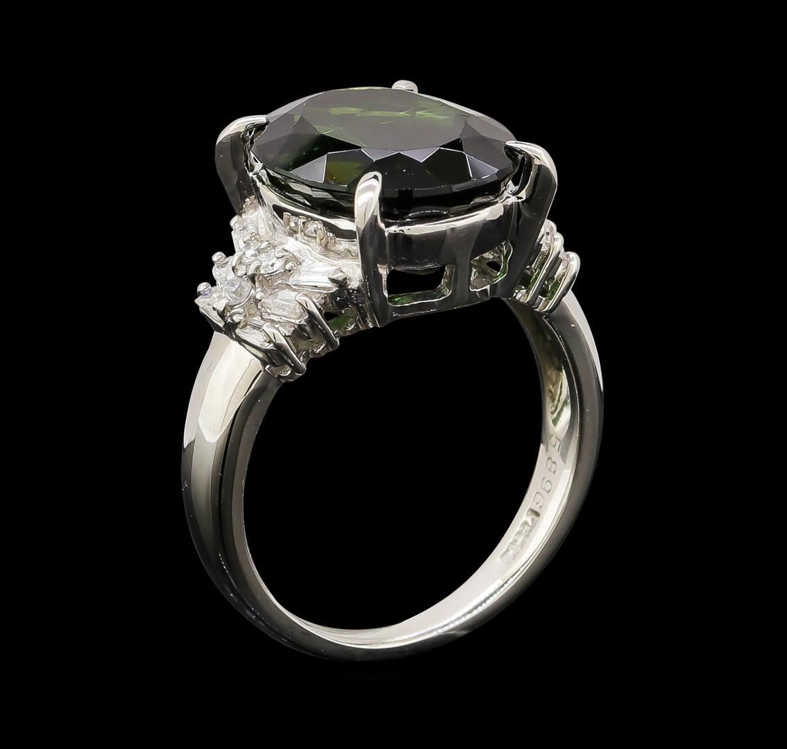 One ring featuring: Platinum containing Tourmaline with a total weight of 5.89ct and Diamonds with a total weight of 0.30ct. Total Weight of Ring: 8 grams.