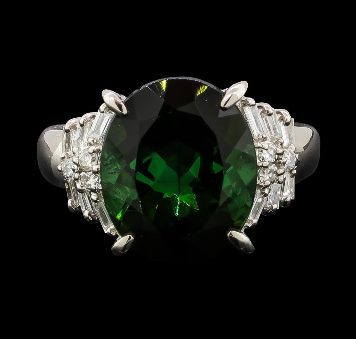 One ring featuring: Platinum containing Tourmaline with a total weight of 5.89ct and Diamonds with a total weight of 0.30ct. Total Weight of Ring: 8 grams.