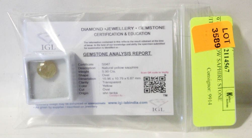 5.9 CTS YELLOW SAPHIRE STONE WITH CERT.