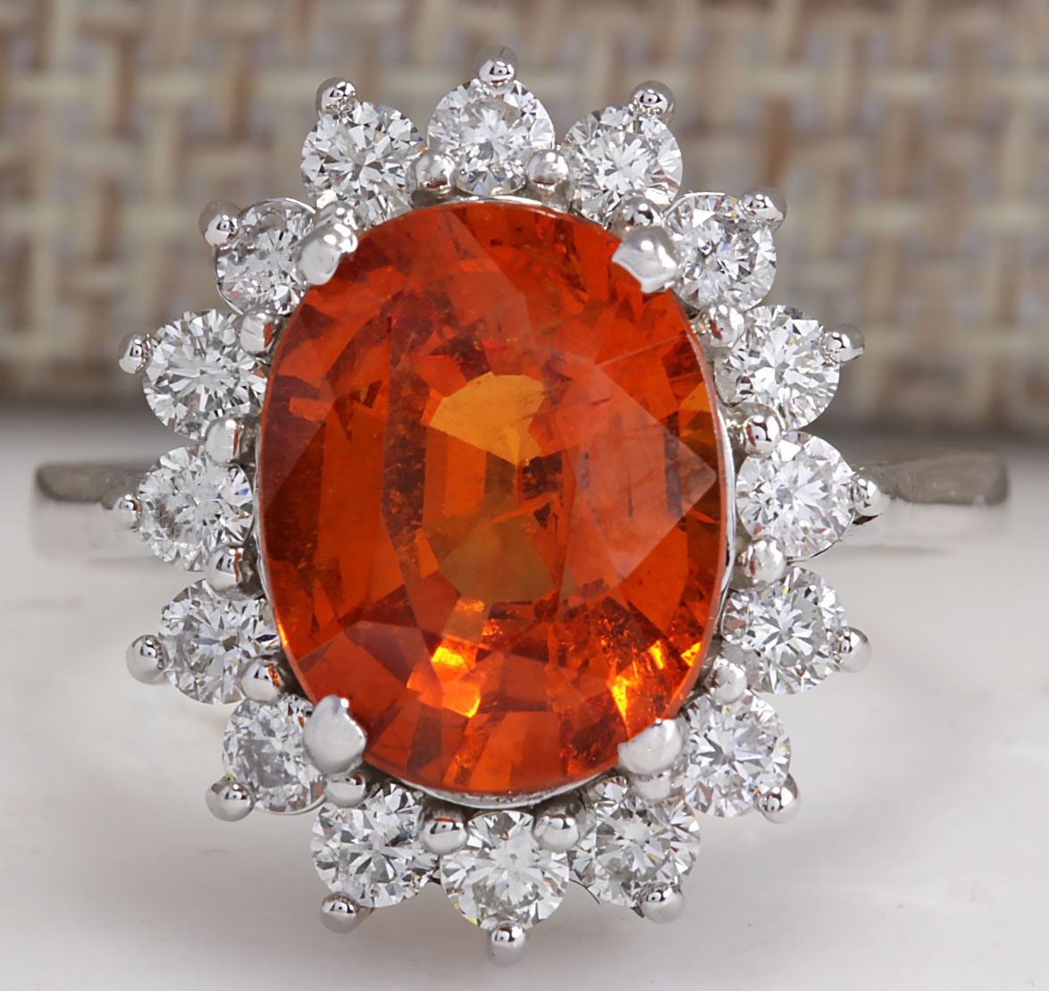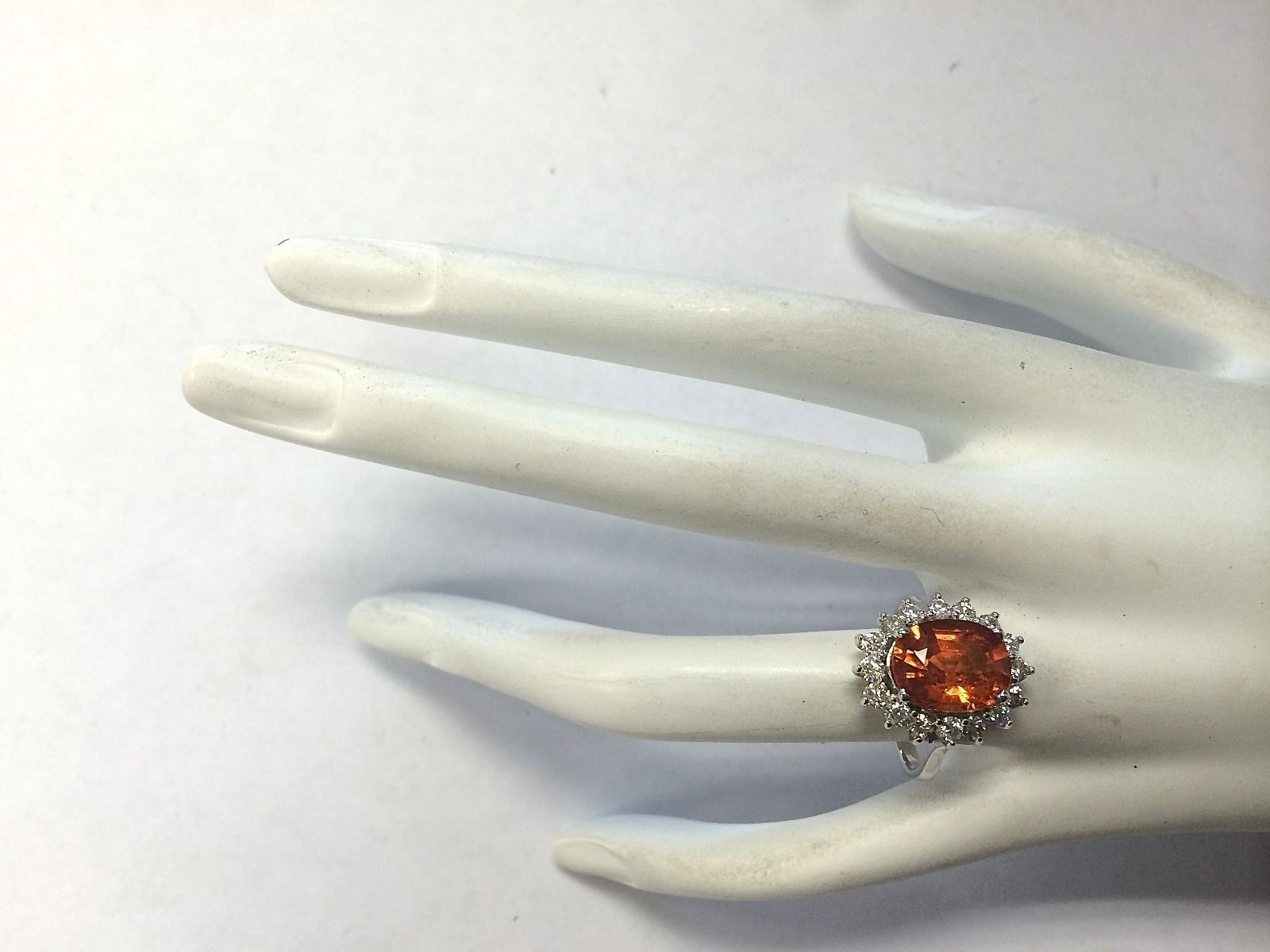 5.91CTW Natural Mandarin Garnet And Diamond Ring In14K White Gold