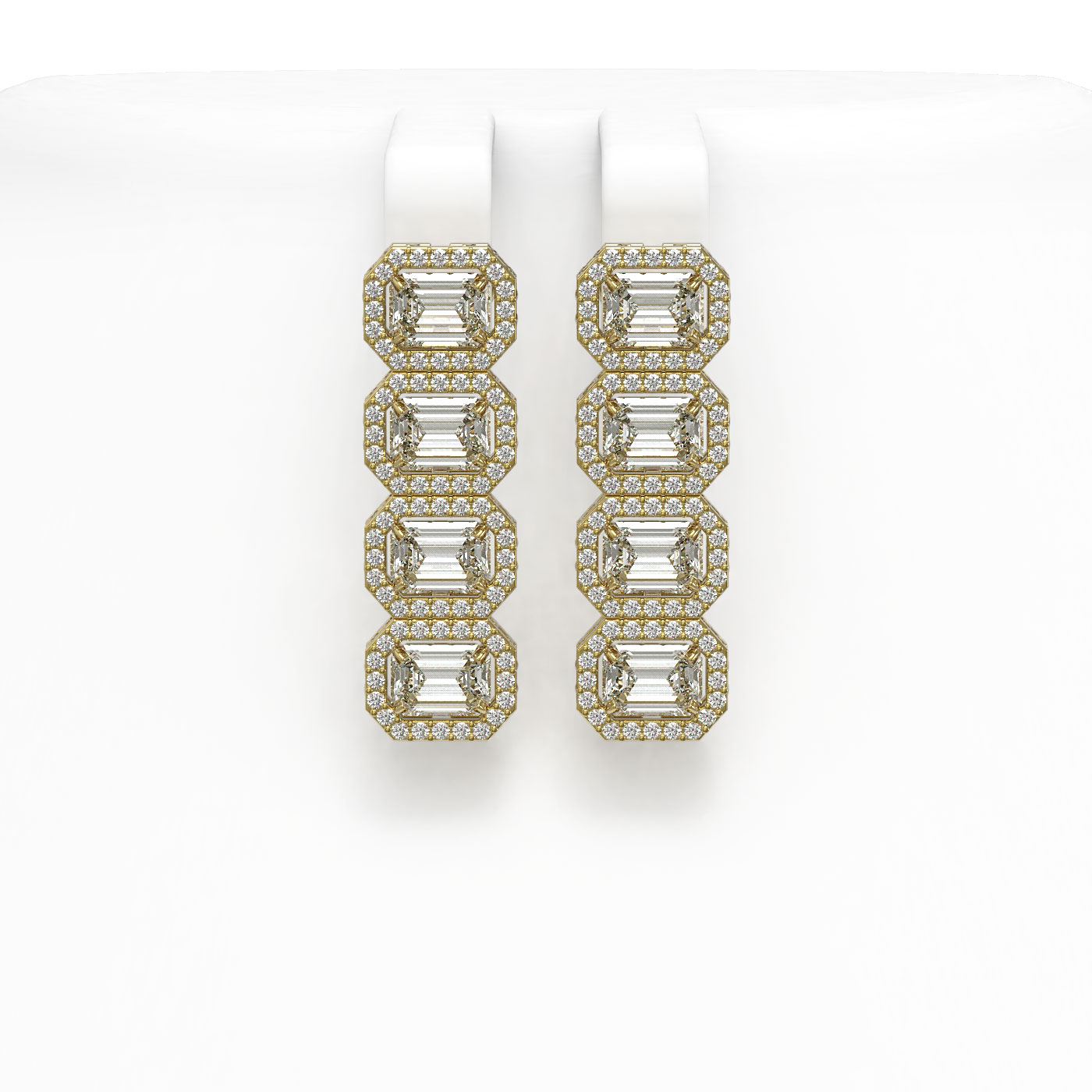 REF-1259X6T -42847 ---- 5.92 CTW Emerald Cut Diamond Designer Earrings 18K Yellow Gold ---- Luxury Designer Brand Earring Appraised at $55,400 Certificate Number US42847 18K Yellow gold, Earring Size is 1 Inche Long, Earring measuring approx. 8 x 28 mm, weighing in total approx. 7.5 grams. Made in the USA and is stamped 18K, Main stone 4.64 carat total weight containing 8 pieces of I-J color with VS/SI quality Emerald Cut shape cut Diamond , Stone #2 1.28 carat total weight containing 160 pieces of G-H color with VS/SI quality Round shape cut Diamond