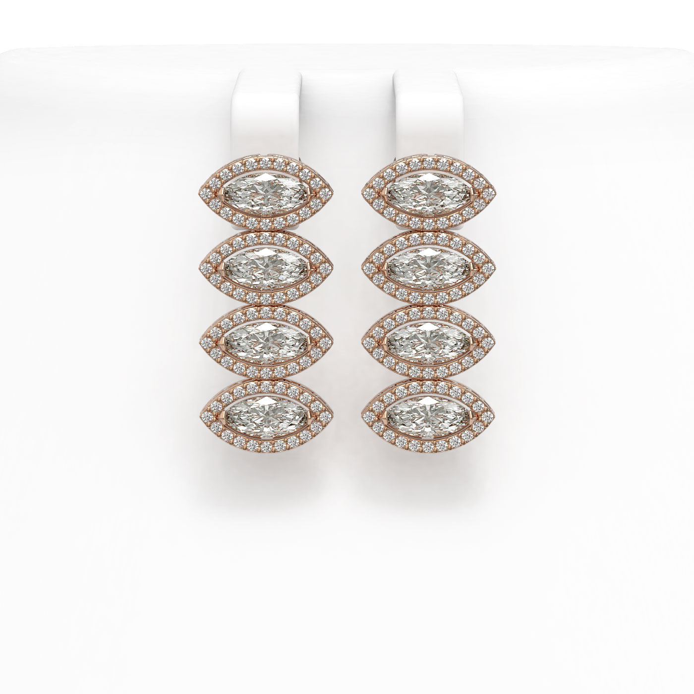 REF-1098H8A -42837 ---- 5.92 CTW Marquise Diamond Designer Earrings 18K Rose Gold ---- Luxury Designer Brand Earring Appraised at $48,350 Certificate Number US42837 18K Rose gold, Earring Size is 1 Inche Long, Earring measuring approx. 12 x 27 mm, weighing in total approx. 8.5 grams. Made in the USA and is stamped 18K, Main stone 4.64 carat total weight containing 8 pieces of I-J color with VS/SI quality Marquise shape cut Diamond , Stone #2 1.28 carat total weight containing 160 pieces of G-H color with VS/SI quality Round shape cut Diamond
