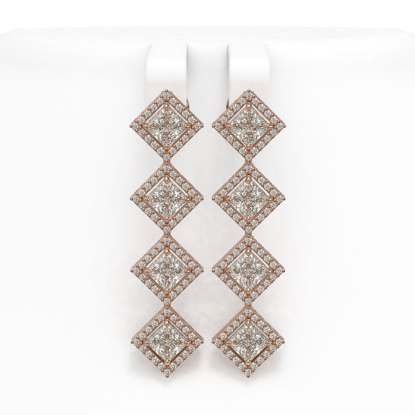REF-1094W9F -42855 ---- 5.92 CTW Princess Cut Diamond Designer Earrings 18K Rose Gold ---- Luxury Designer Brand Earring Appraised at $48,200 Certificate Number US42855 18K Rose gold, Earring Size is 1 1/3 Inches Long, Earring measuring approx. 8 x 35 mm, weighing in total approx. 8 grams. Made in the USA and is stamped 18K, Main stone 4.64 carat total weight containing 8 pieces of I-J color with VS/SI quality Princess shape cut Diamond , Stone #2 1.28 carat total weight containing 160 pieces of G-H color with VS/SI quality Round shape cut Diamond