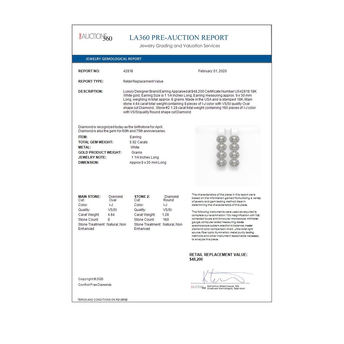 REF-821R2K - SKU: 42818 ---- 5.92 ctw Oval Cut Diamond Micro Pave Earrings 18K White Gold