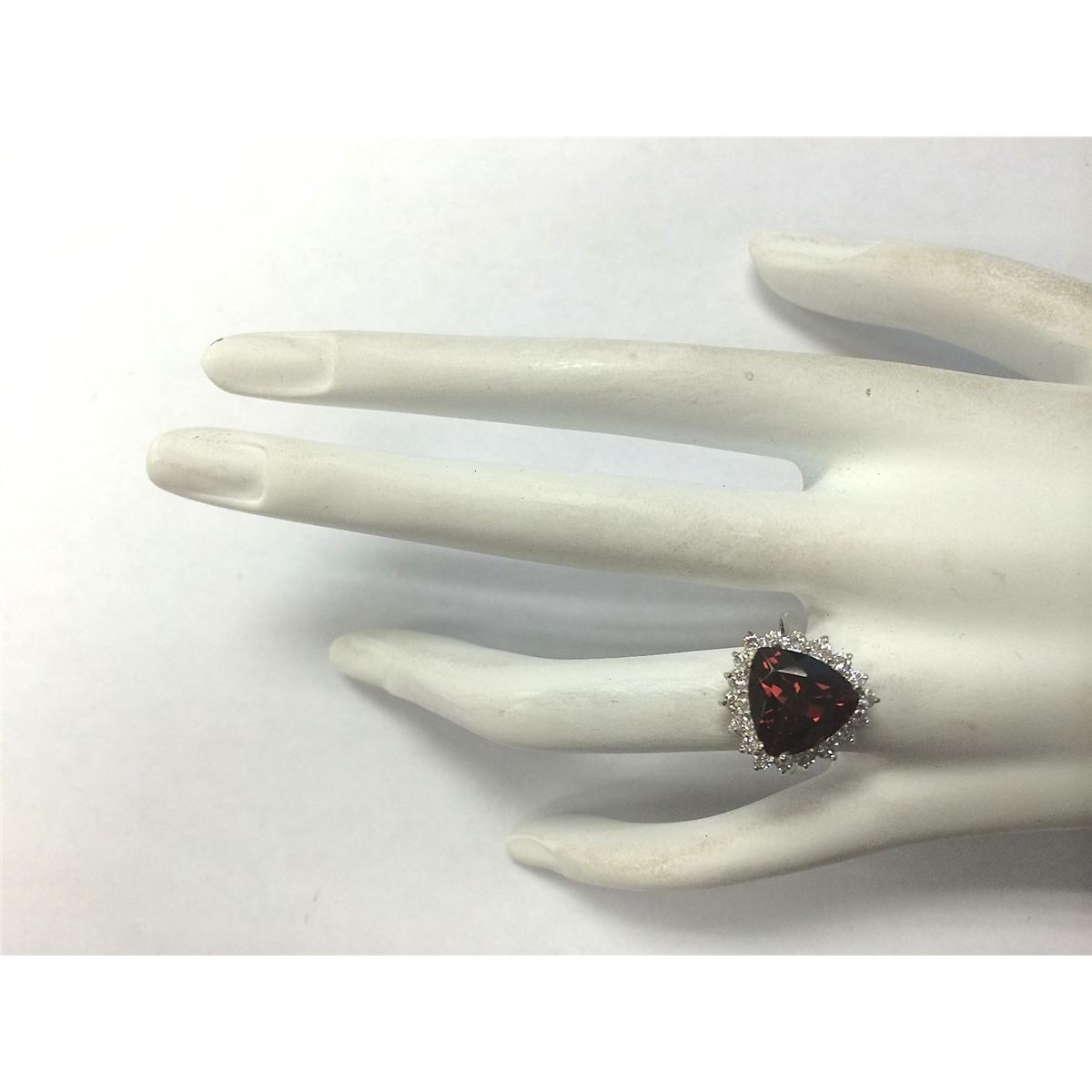 Stamped: 14K Ring Size: 6.5 Total Ring Weight: 4 Grams Diamond Weight: Total natural diamond weight is .65carat. SI1-SI2 clarity / G-H color Gemstone Weight: Total Natural Tourmaline Weight is 5.27ctw (Measures: 11.00x11.13mm) VVS Face Measures: 16.30x15.30mm Main stone color: Red [SKU:702609]