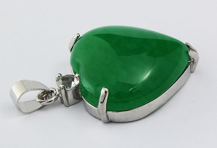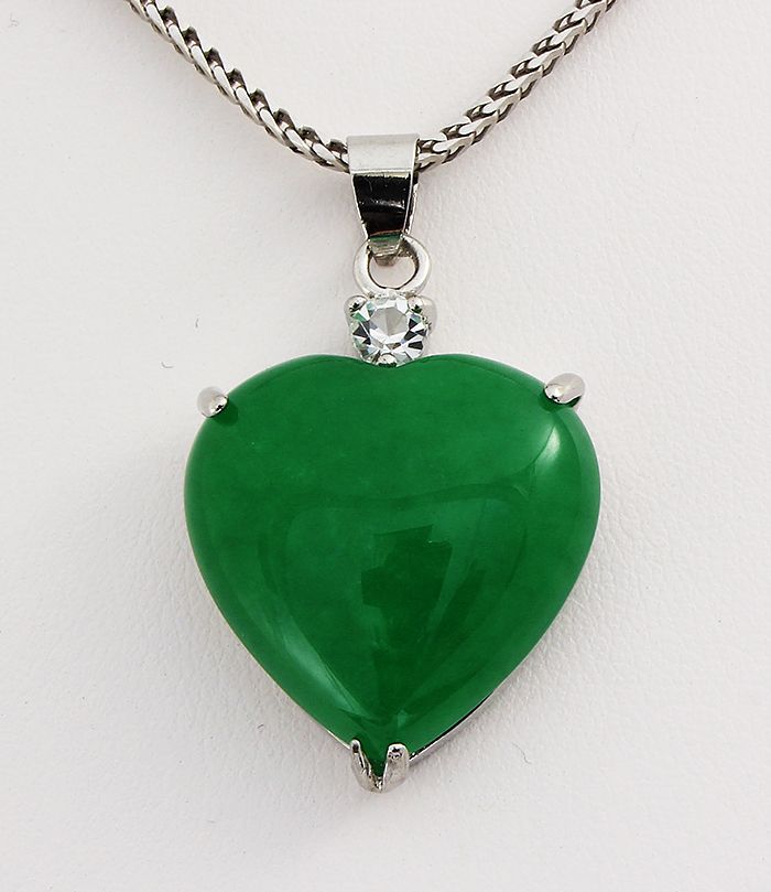 5.92g Natural Heart Jade Set Silver Round Cubic Zircon **|**|** ; MSRP: $0