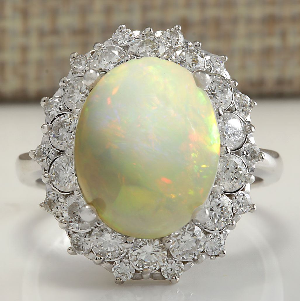 5.93 CTW Natural Opal And Diamond Ring In 14K Solid White Gold