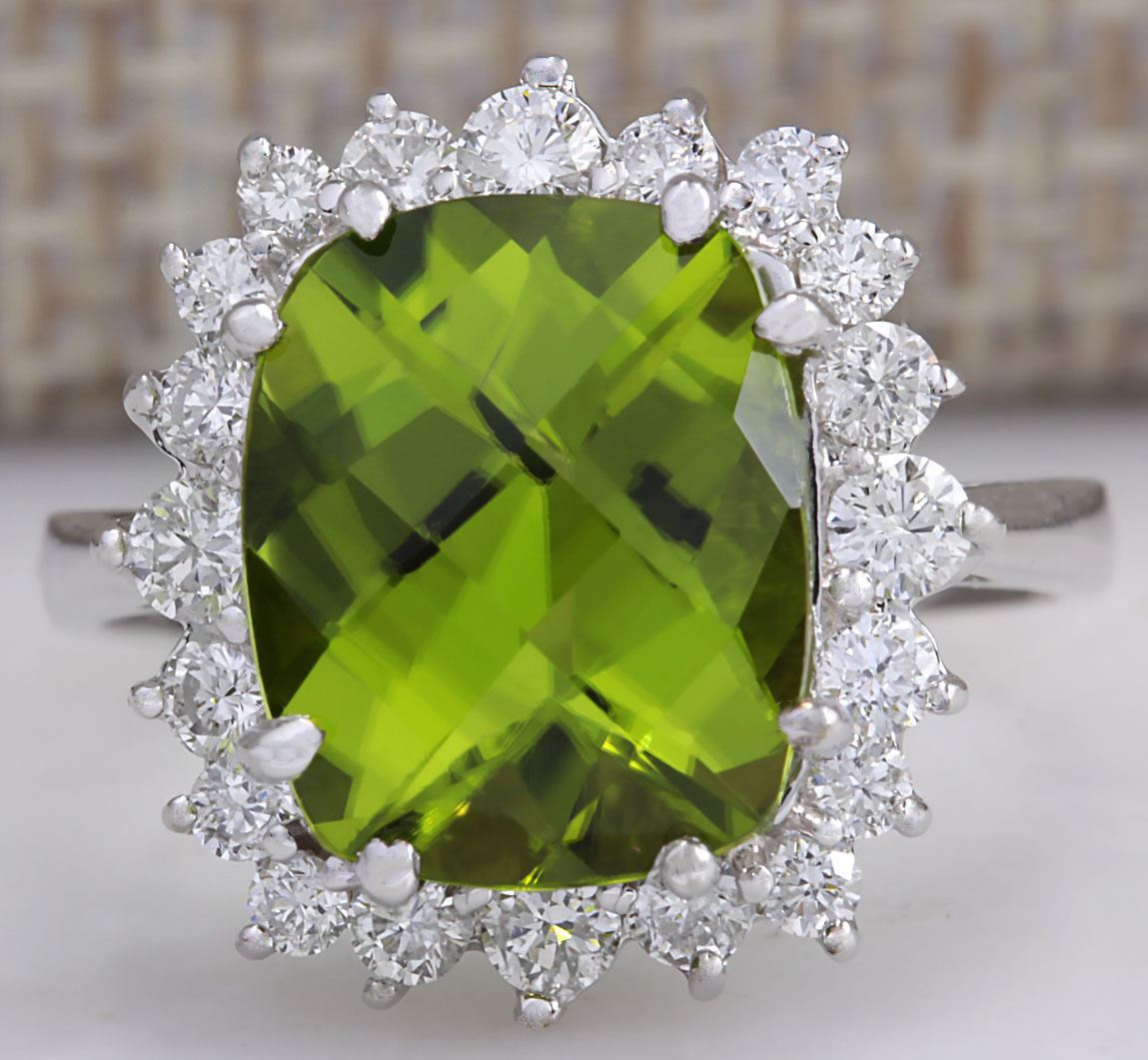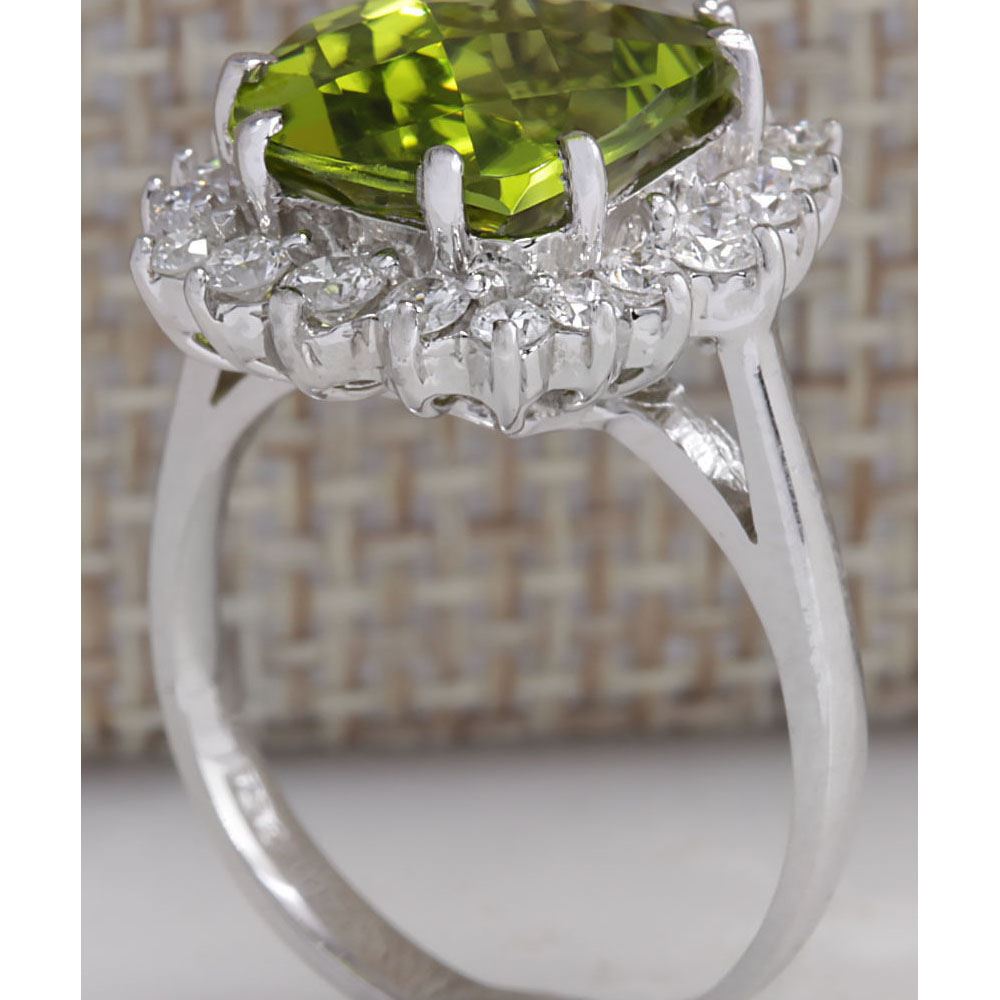 5.93 CTW Natural Peridot And Diamond Ring 14K Solid White Gold