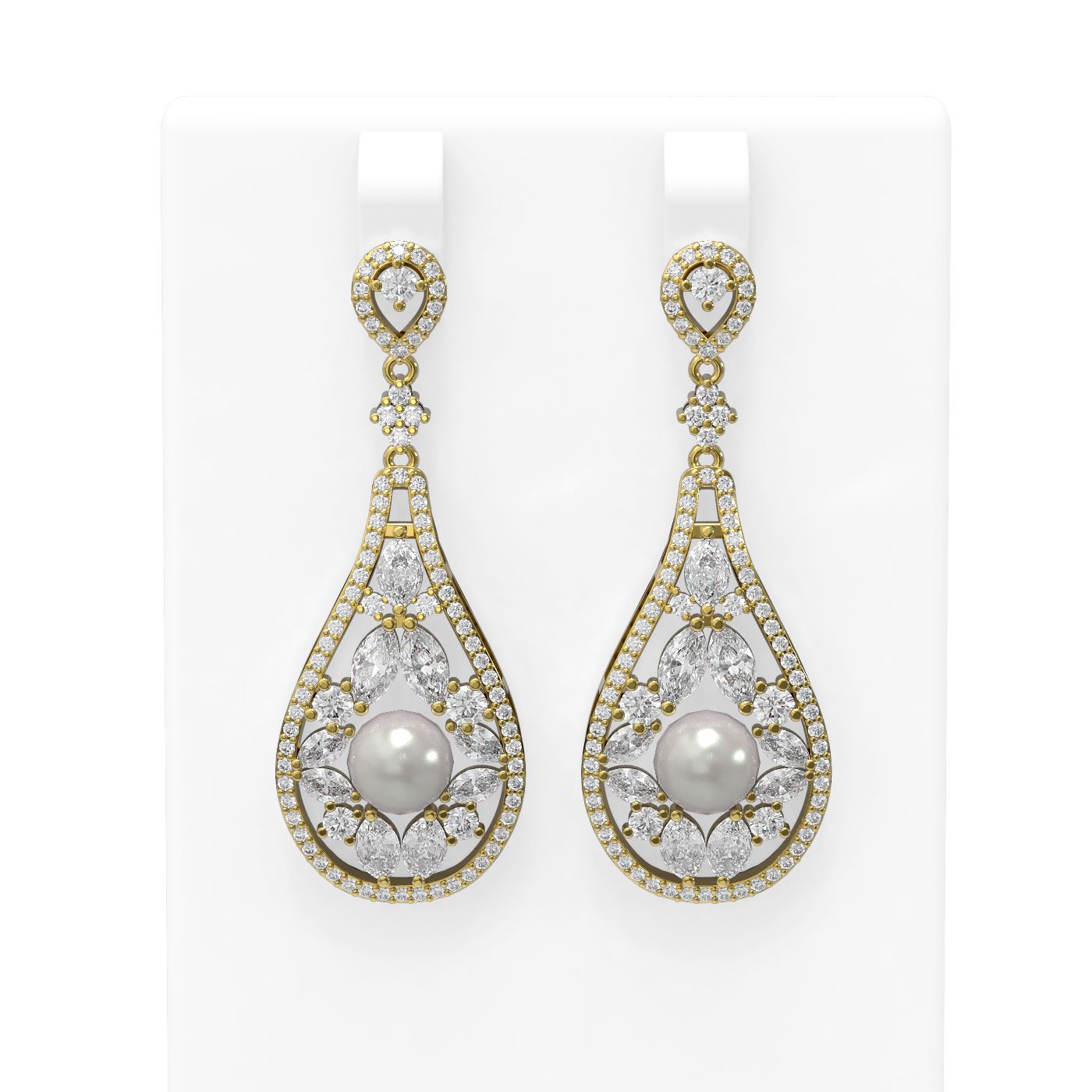REF-612G4W - SKU: 60835 ---- 5.93 ctw Diamond & Pearl Earrings 18K Yellow Gold