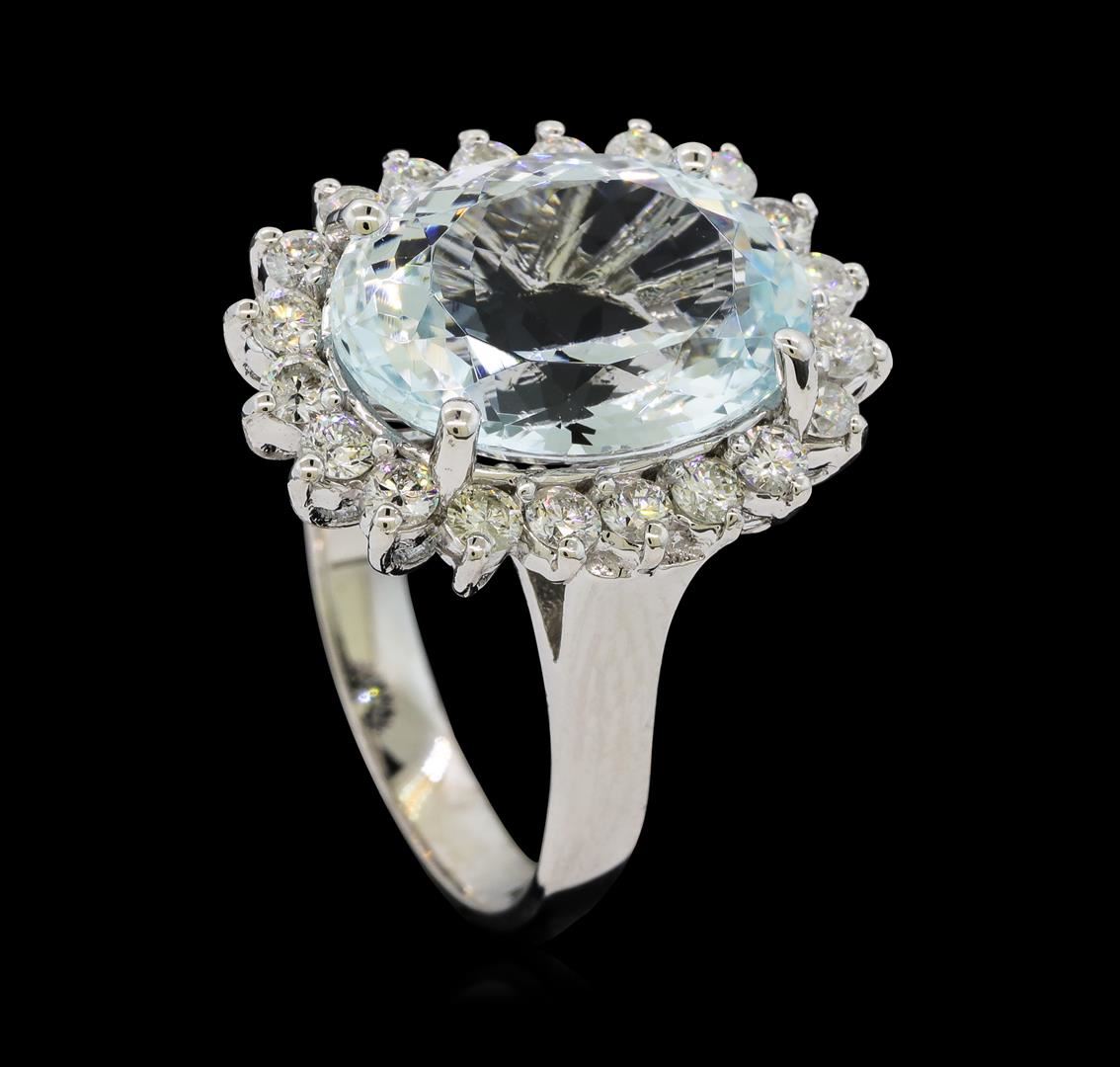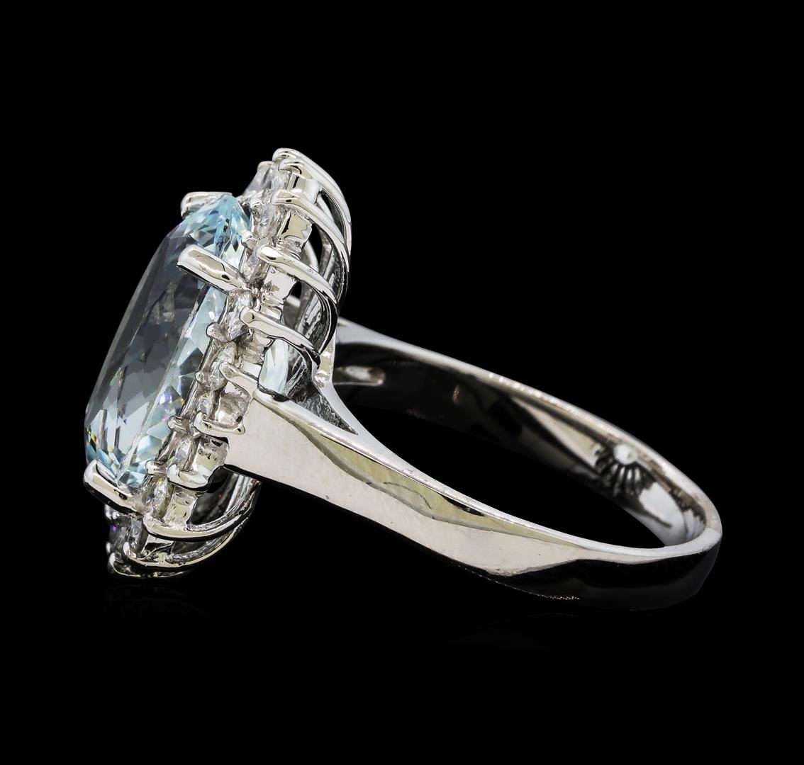 One Aquamarine and Diamond Ring including: 14KT White Gold weighing a total of 5.43 grams, Aquamarine weighing a total of 5.95ct, and 20 Diamonds weighing a total of 0.80 ctw.