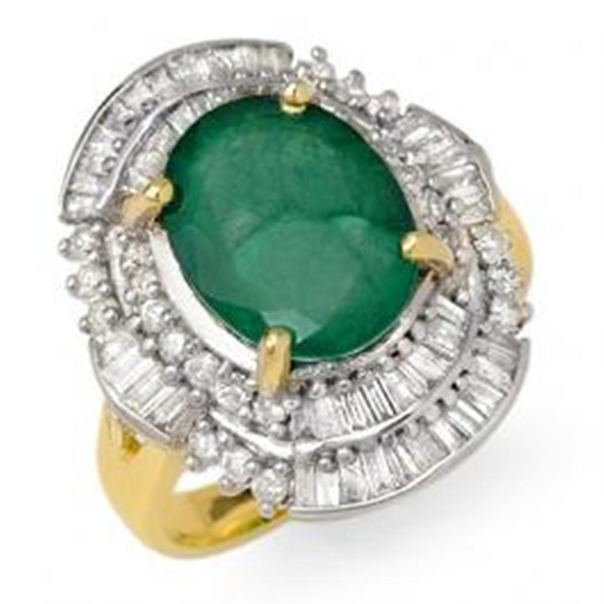 Diamond: 26 RD & BGT cut @ 1.25 ctw Clarity: SI-I Color: H-K Gemstone: Natural Emerald Gemstone color: GreenGemstone quality: Good-to-Very Good Gemstone Cut & Weight: 1 Oval cut @ 4.70 ctw Metal Purity & Color : 14K Gold-Yellow Gold weight: 6.80 grams Ring size (US): 7Dimension: Approx. 3/4" x 11/16"