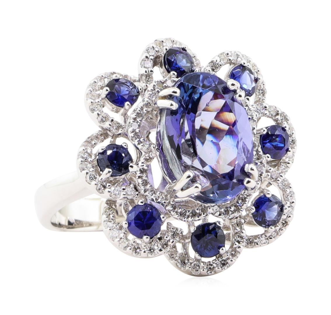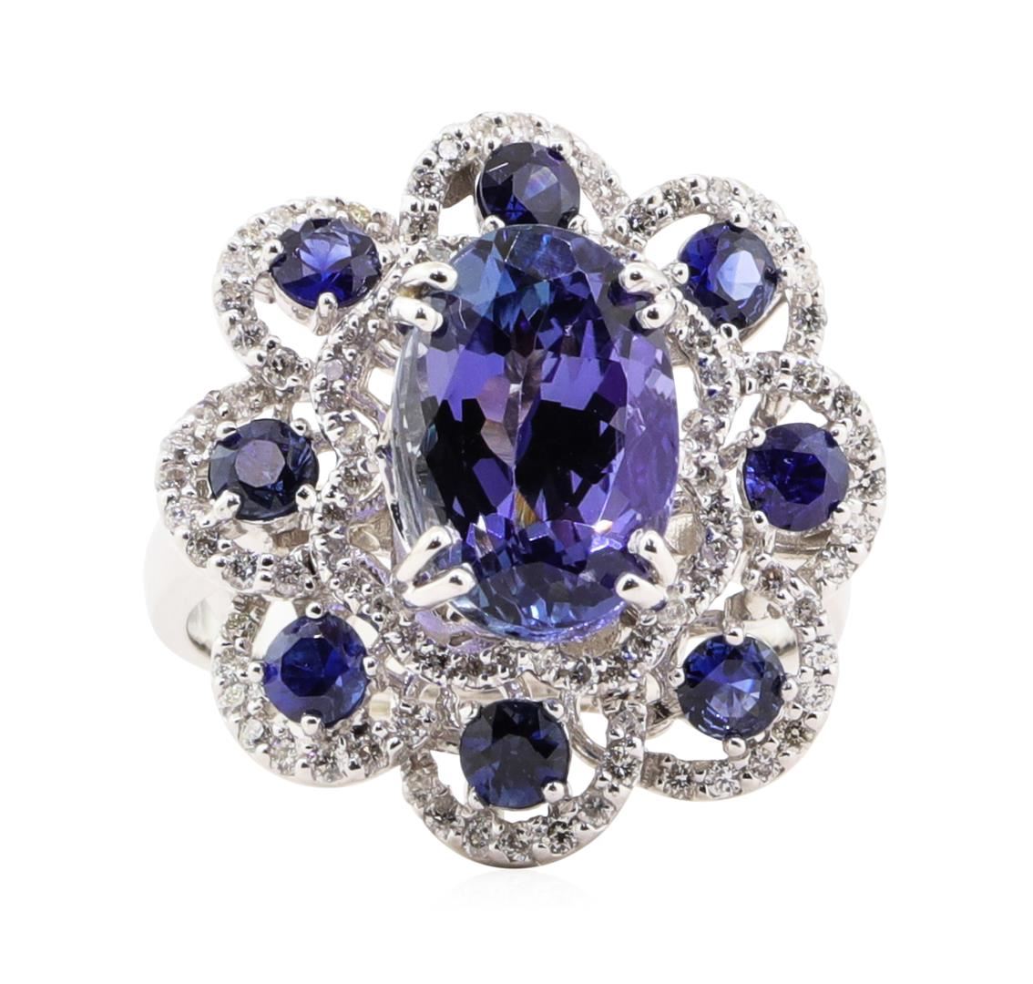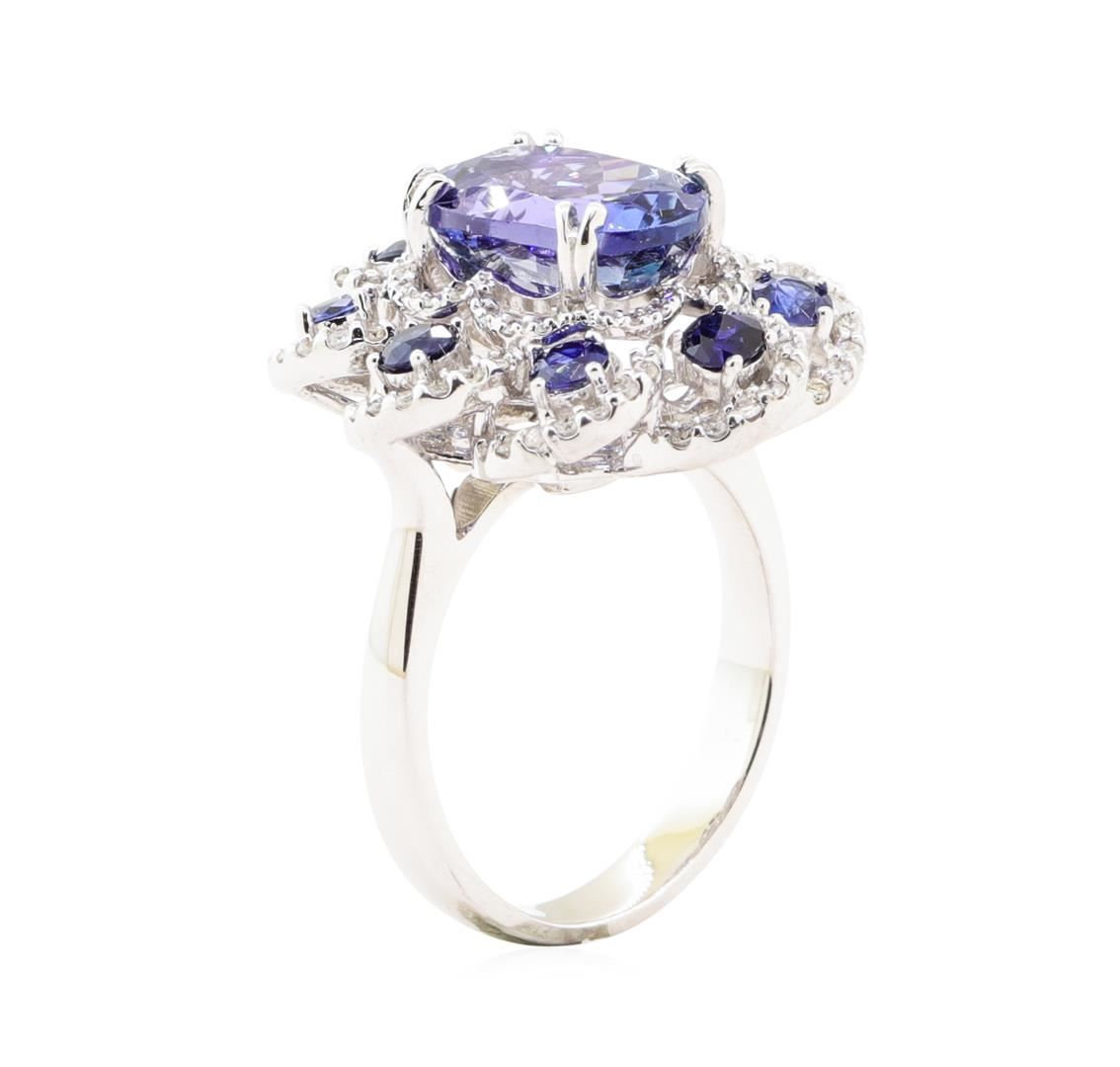 5.95 ctw Tanzanite, Sapphire, and Diamond Ring - 14KT White Gold