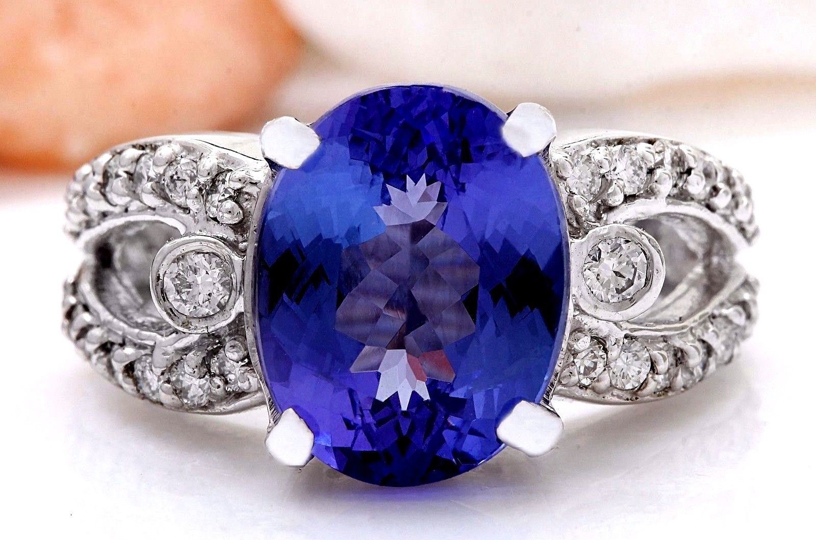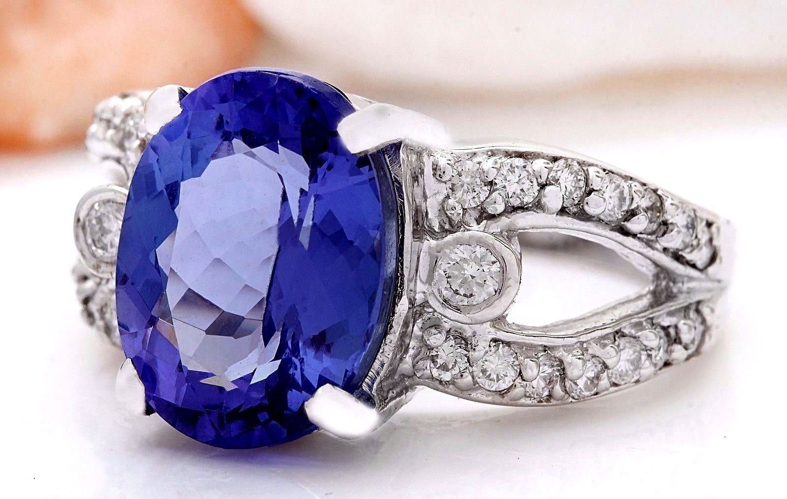5.96 Carat Natural Tanzanite 14K Solid White Gold Diamond Ring