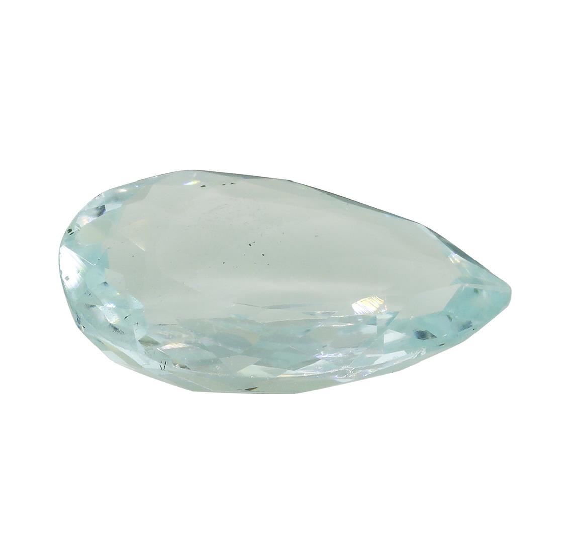 One natural pear cut aquamarine with an exact weight of 5.97ct., clarity is slightly included, slightly grayish greenish blue, light. Gemological Appraisals Services estimates the retail value at $1701.45 GAS Appraised.
