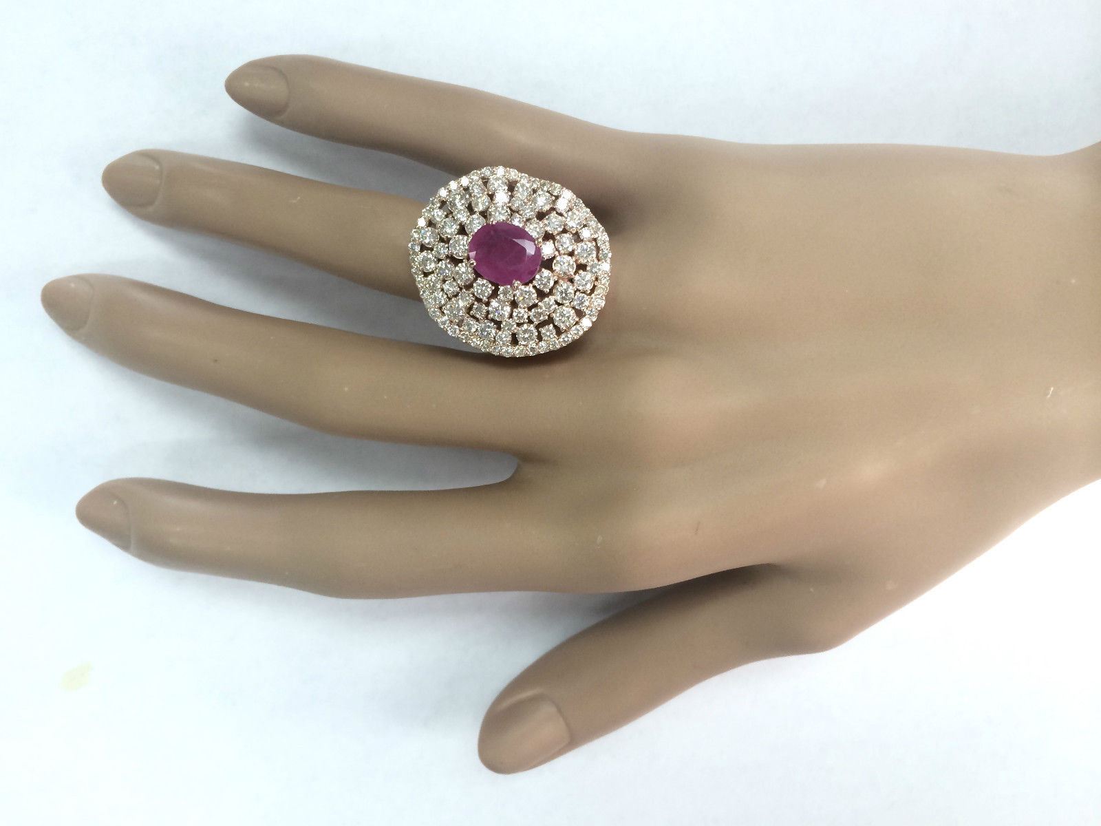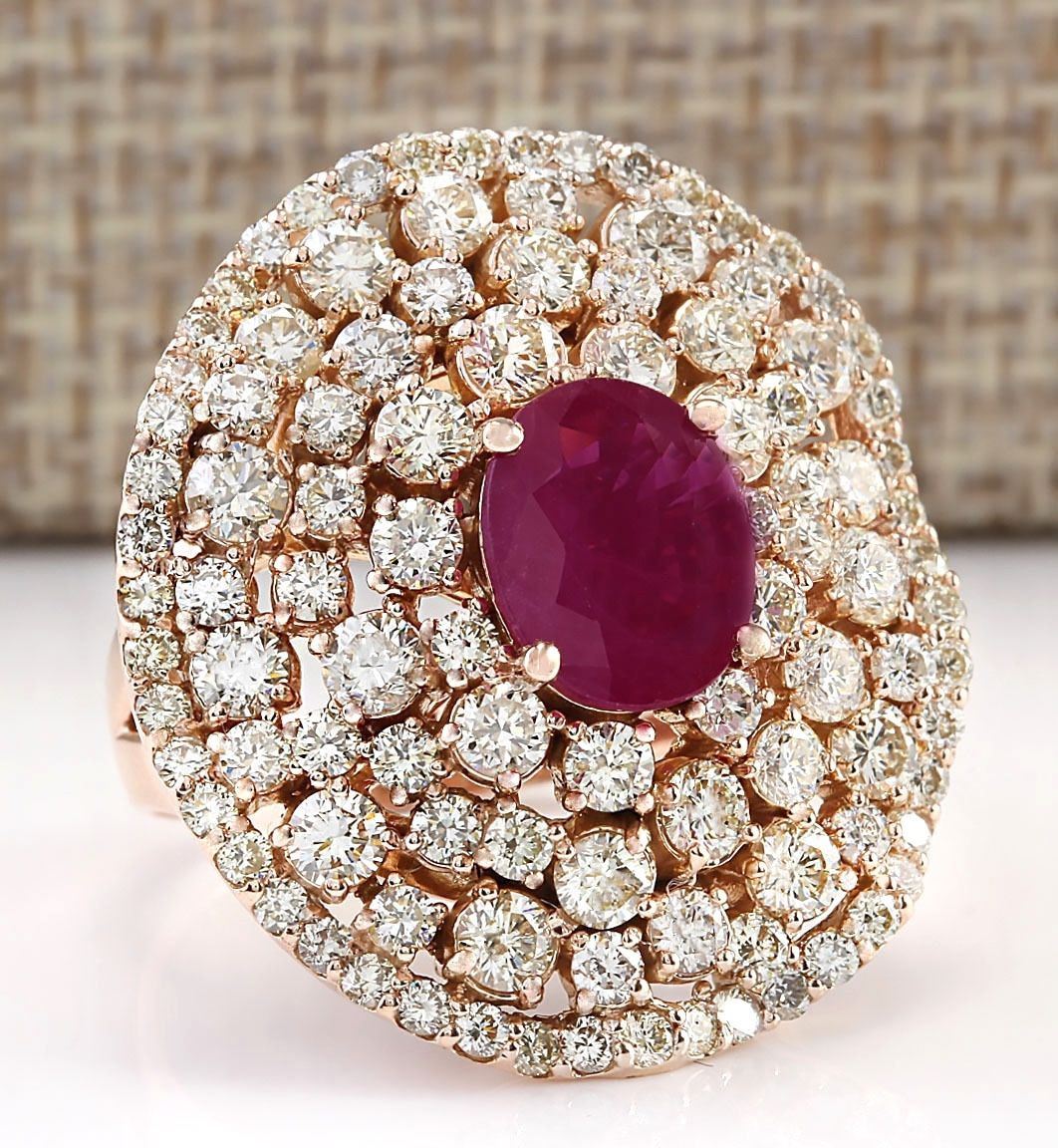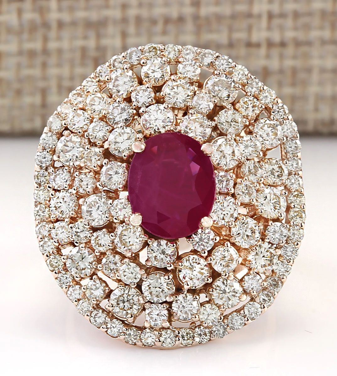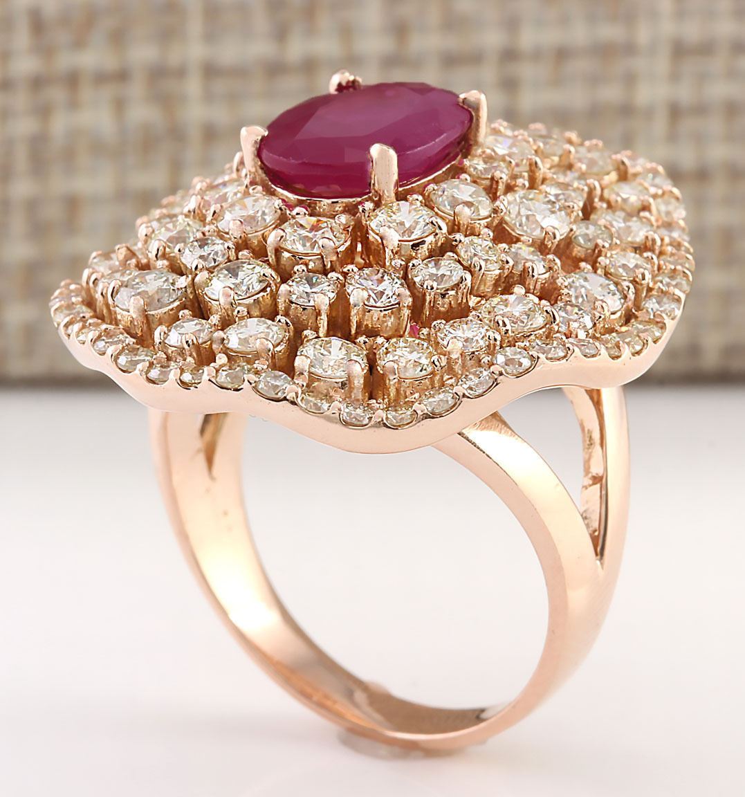 5.98 CTW Natural Ruby And Diamond Ring In 14k Rose Gold