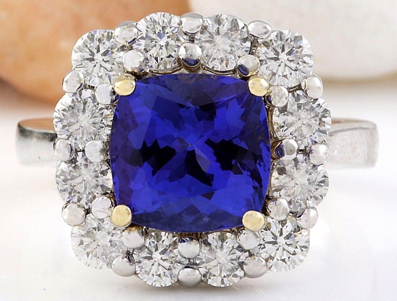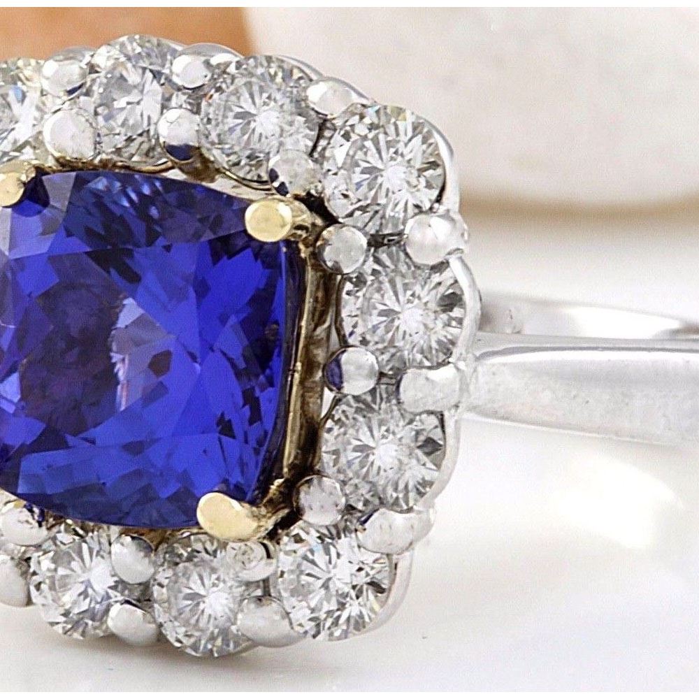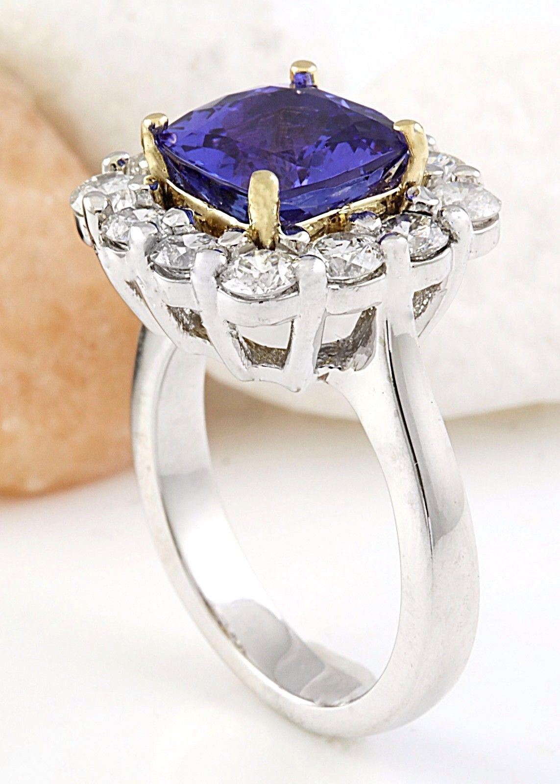5.98 Carat Natural Tanzanite 14K Solid Two Tone Gold Diamond Ring