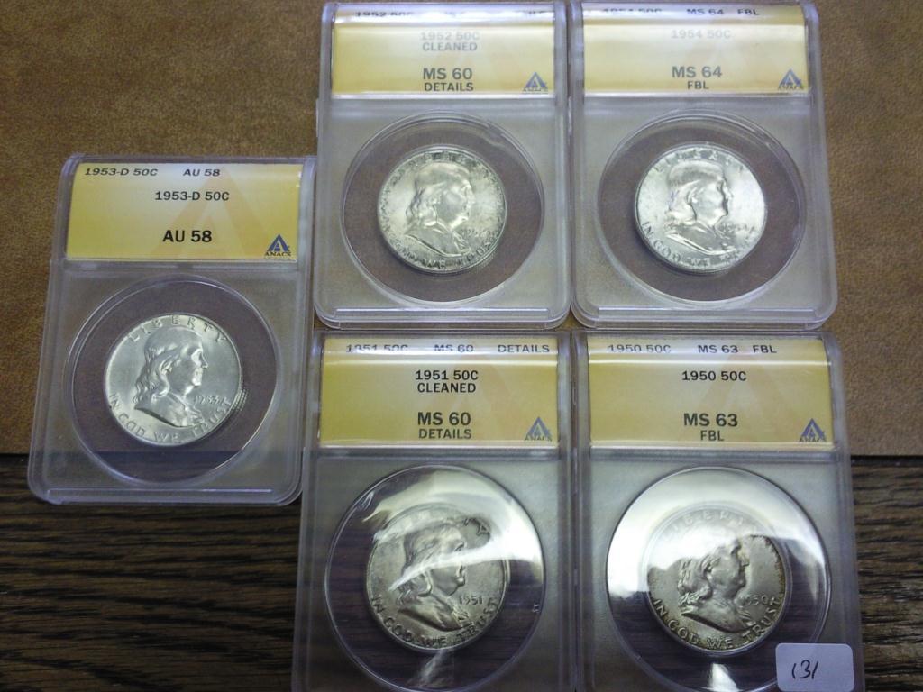 1950 MS 63 FBL, 1951 MS60 Details Cleaned, 1952 MS 60 Details Cleaned, 1953-D AU58, 1954 MS64 FBL