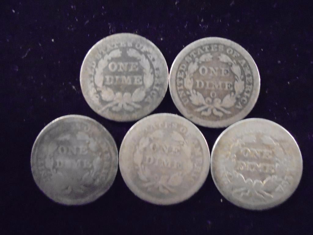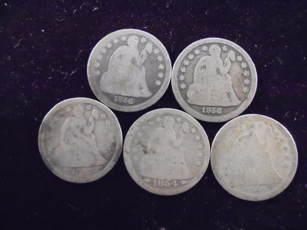 5 ASSORTED 1850'S SEATED LIBERTY DIMES