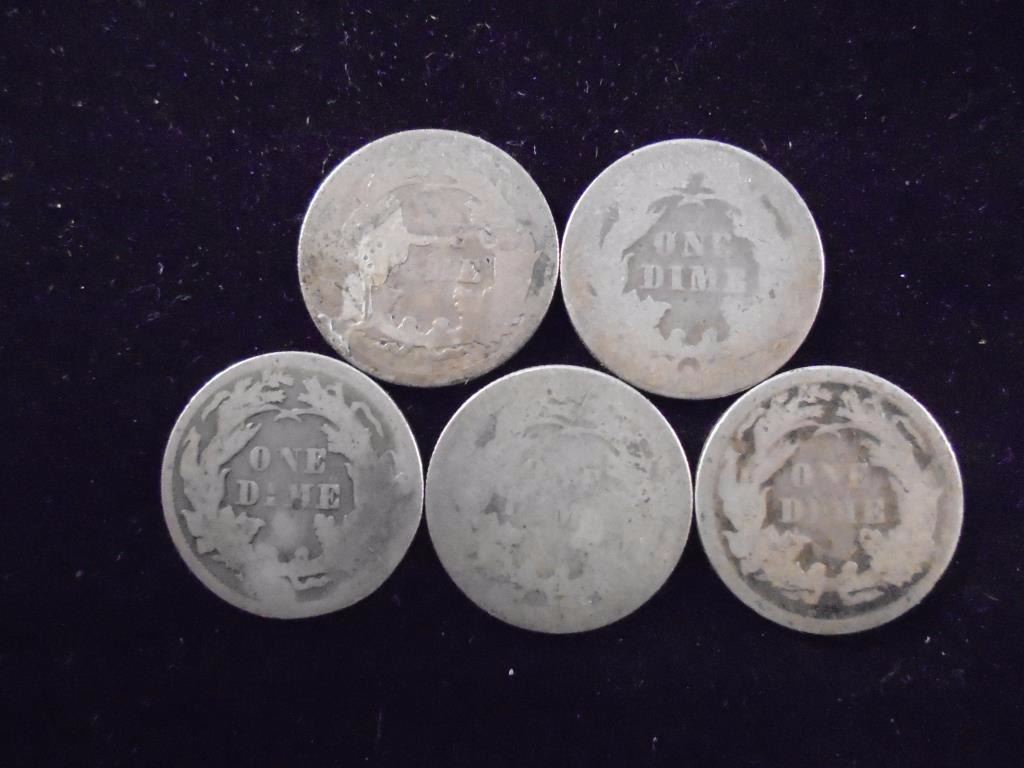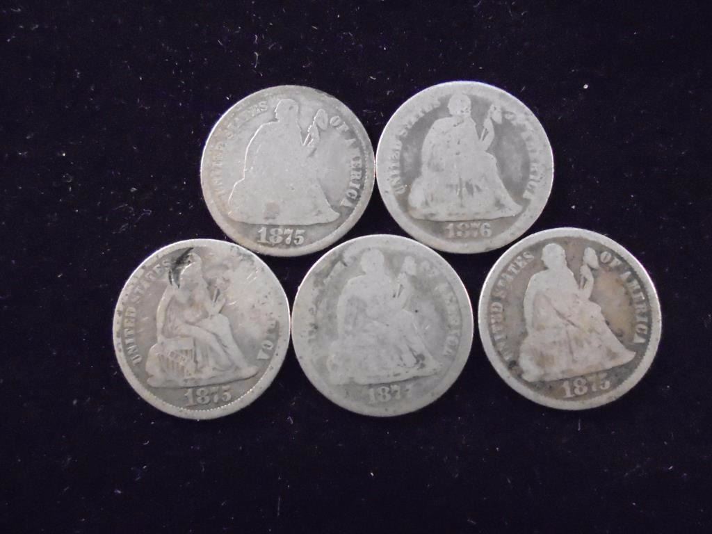 5 ASSORTED 1870'S SEATED LIBERTY DIMES
