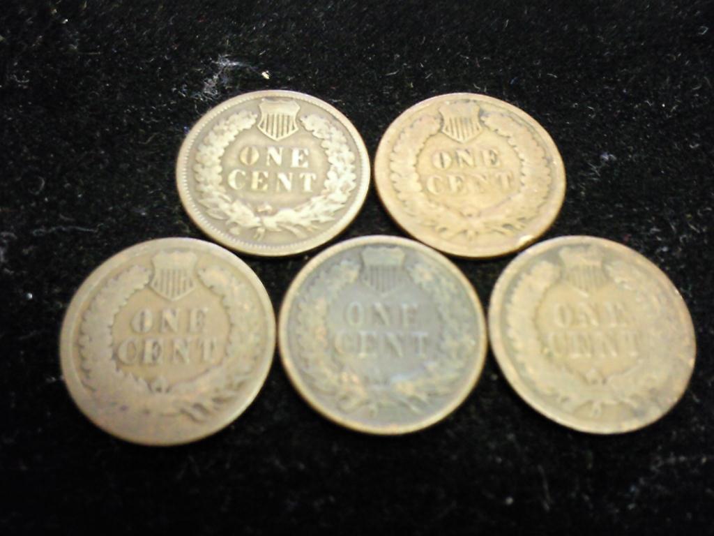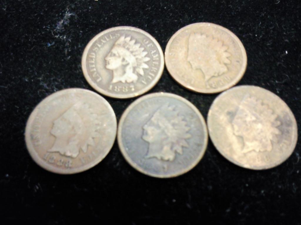 5 ASSORTED 1880'S INDIAN HEAD CENTS