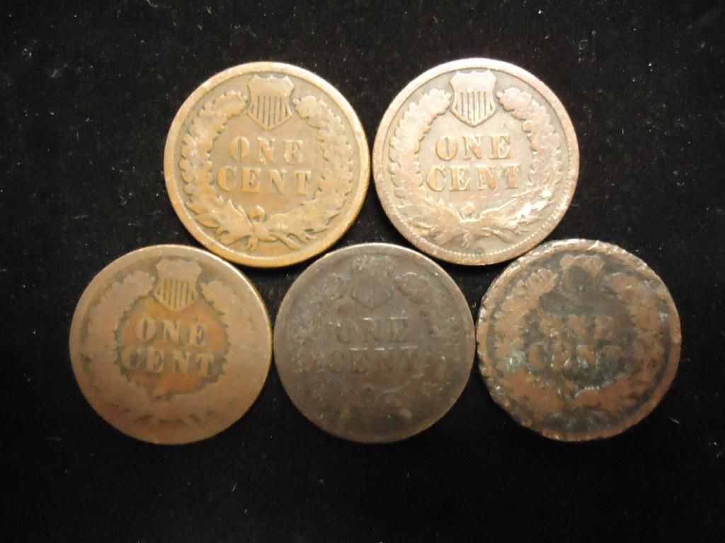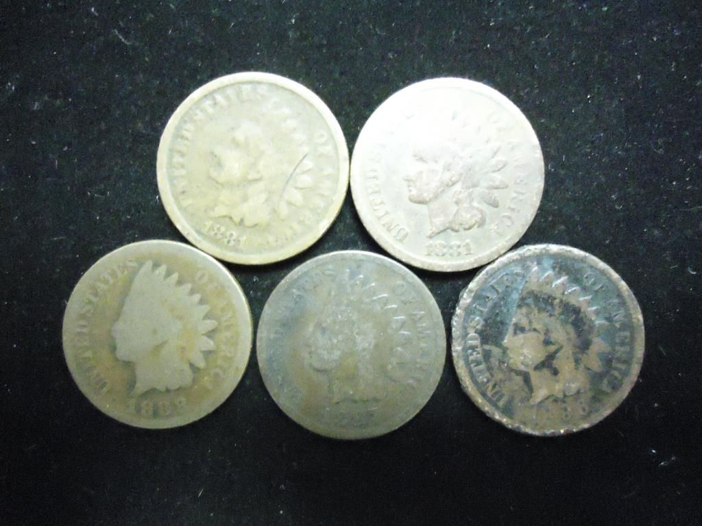 5 ASSORTED 1880'S INDIAN HEAD CENTS