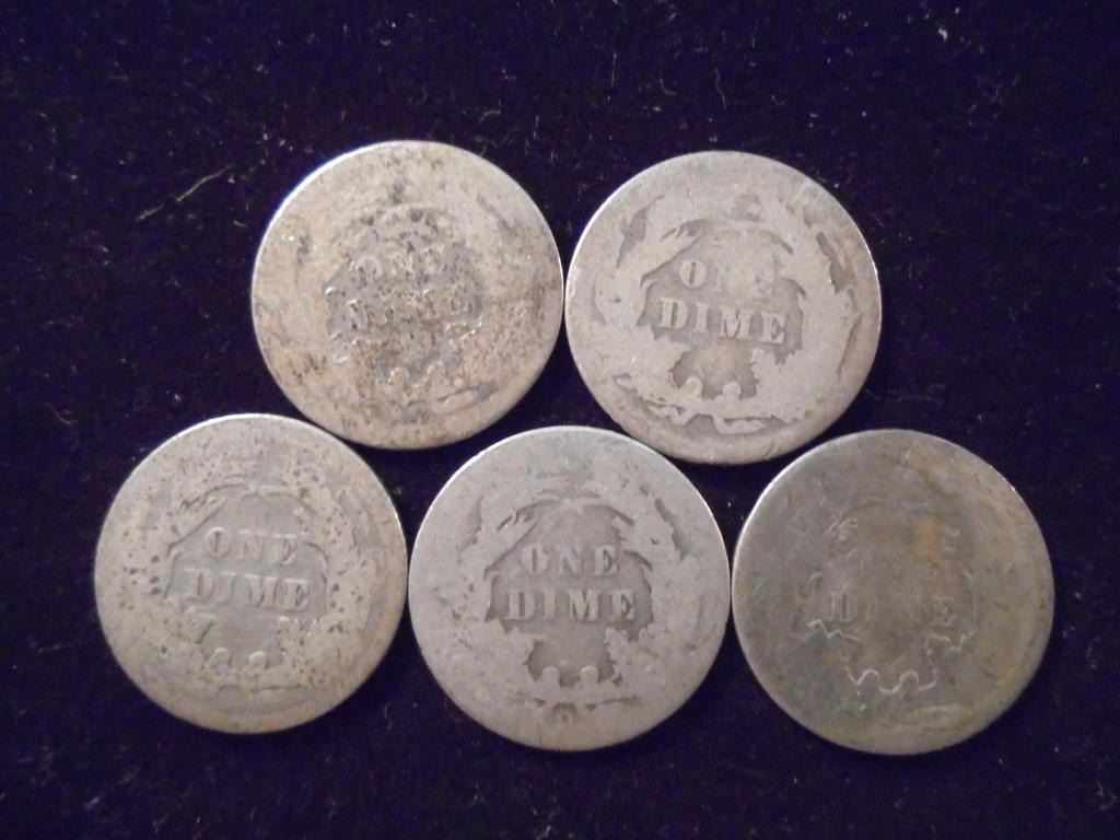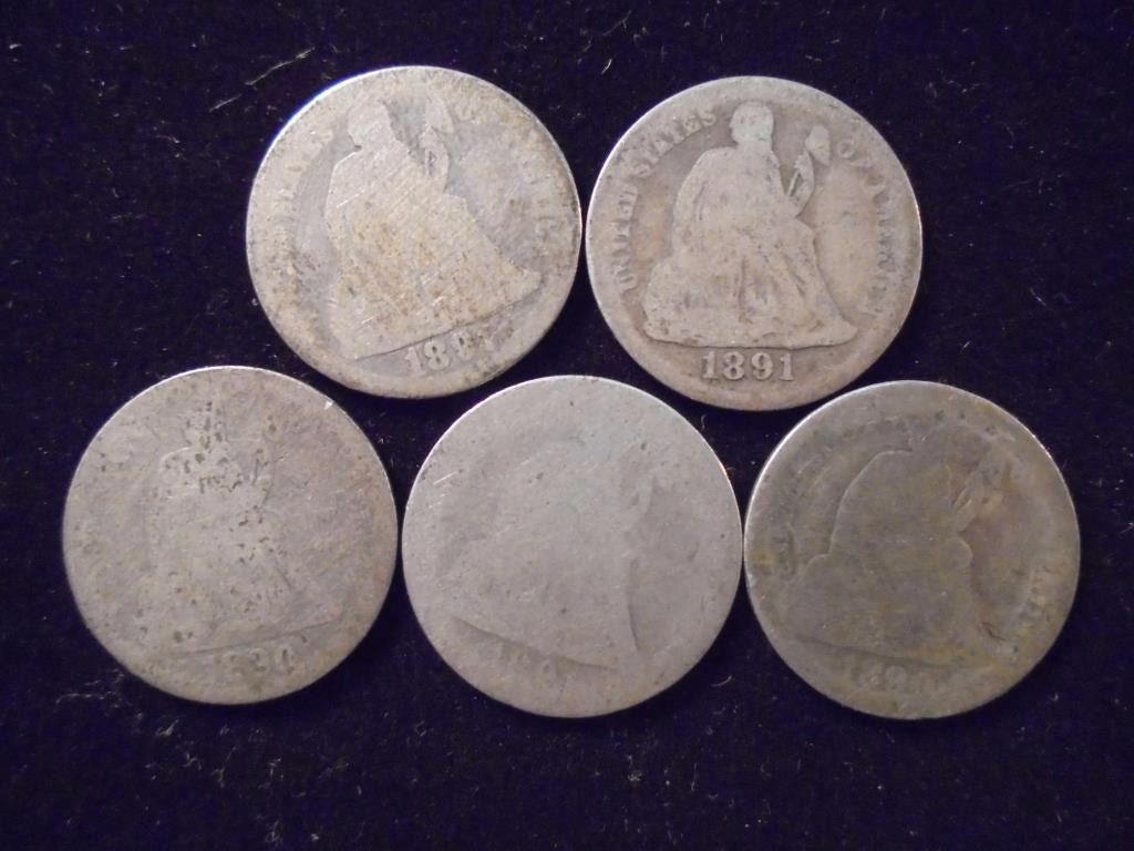 5 ASSORTED 1890'S SEATED LIBERTY DIMES