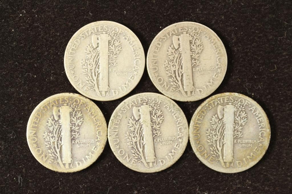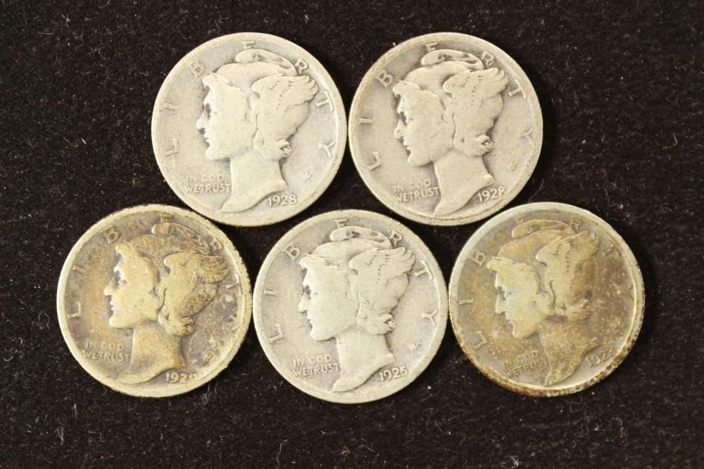 5 ASSORTED 1920'S MERCURY DIMES