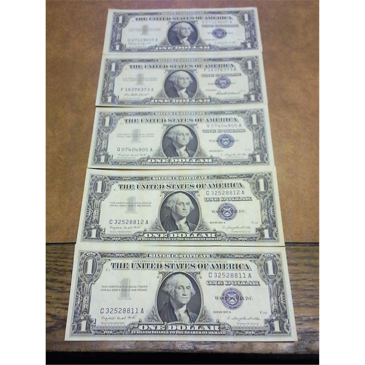5 ASSORTED 1957 $1 SILVER CERTIFICATES CRISP CU