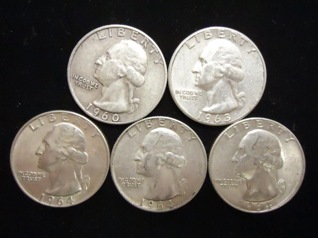 5 ASSORTED 1960'S WASHINGTON SILVER QUARTERS