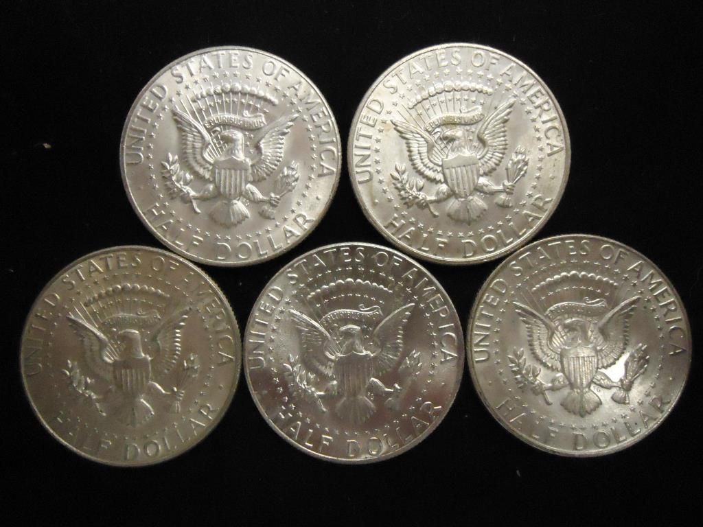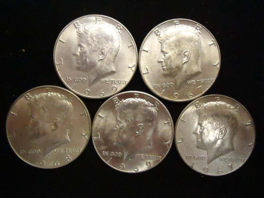 5 ASSORTED 40% SILVER KENNEDY HALF DOLLARS
