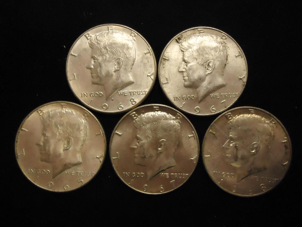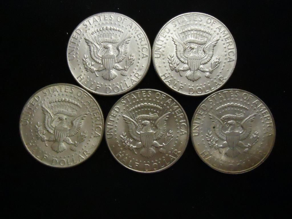 5 ASSORTED 40% SILVER KENNEDY HALF DOLLARS