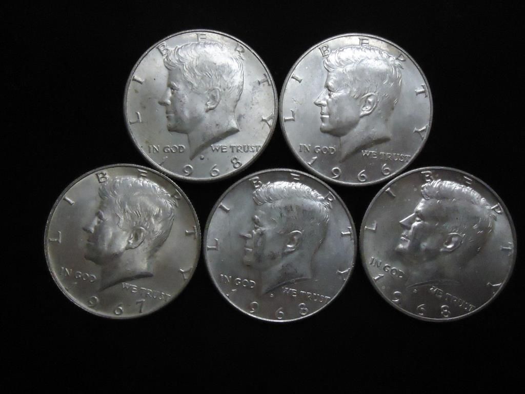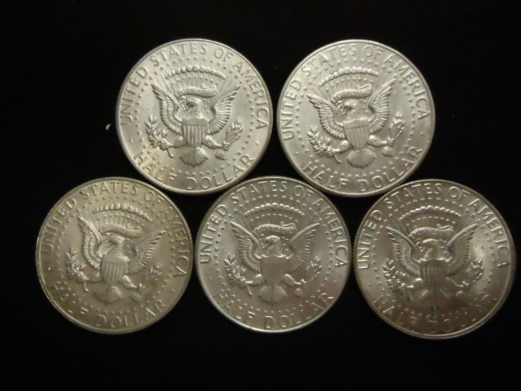 5 ASSORTED 40% SILVER KENNEDY HALF DOLLARS