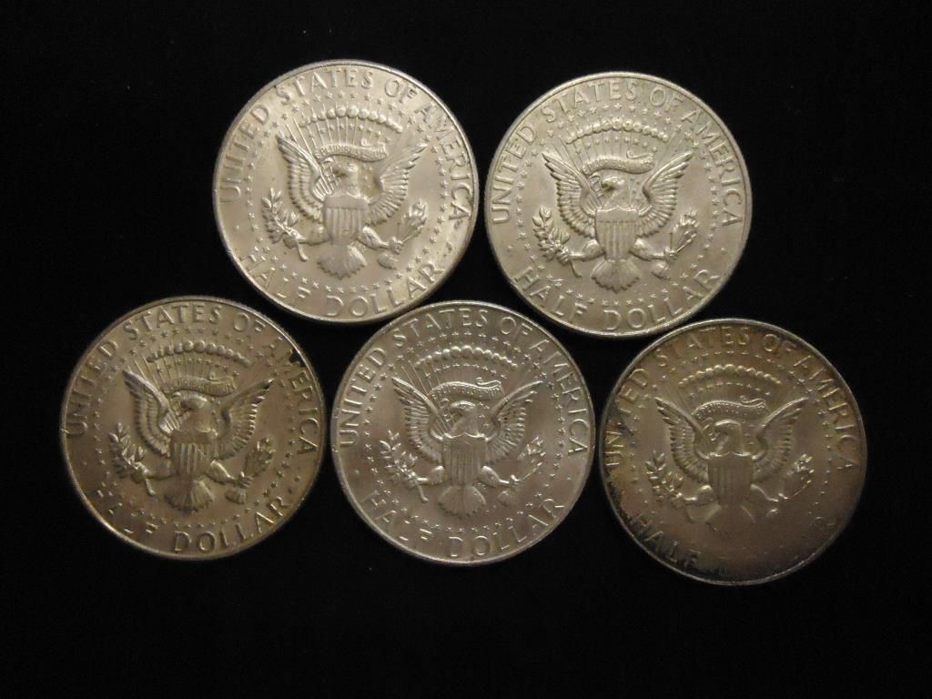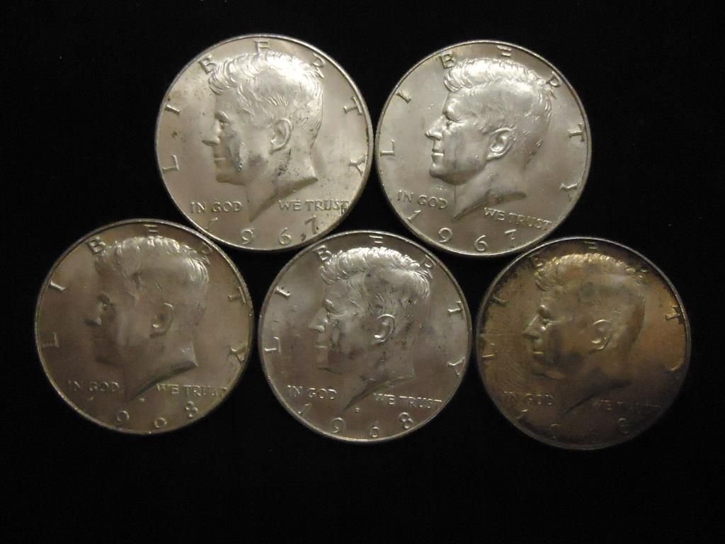 5 ASSORTED 40% SILVER KENNEDY HALF DOLLARS