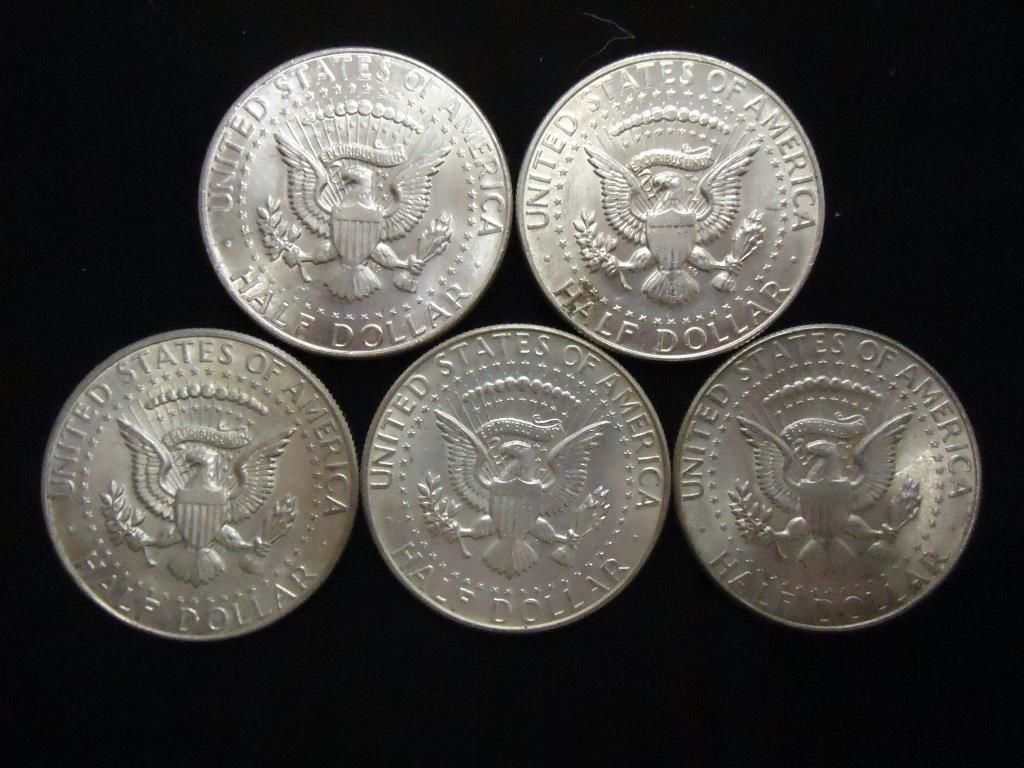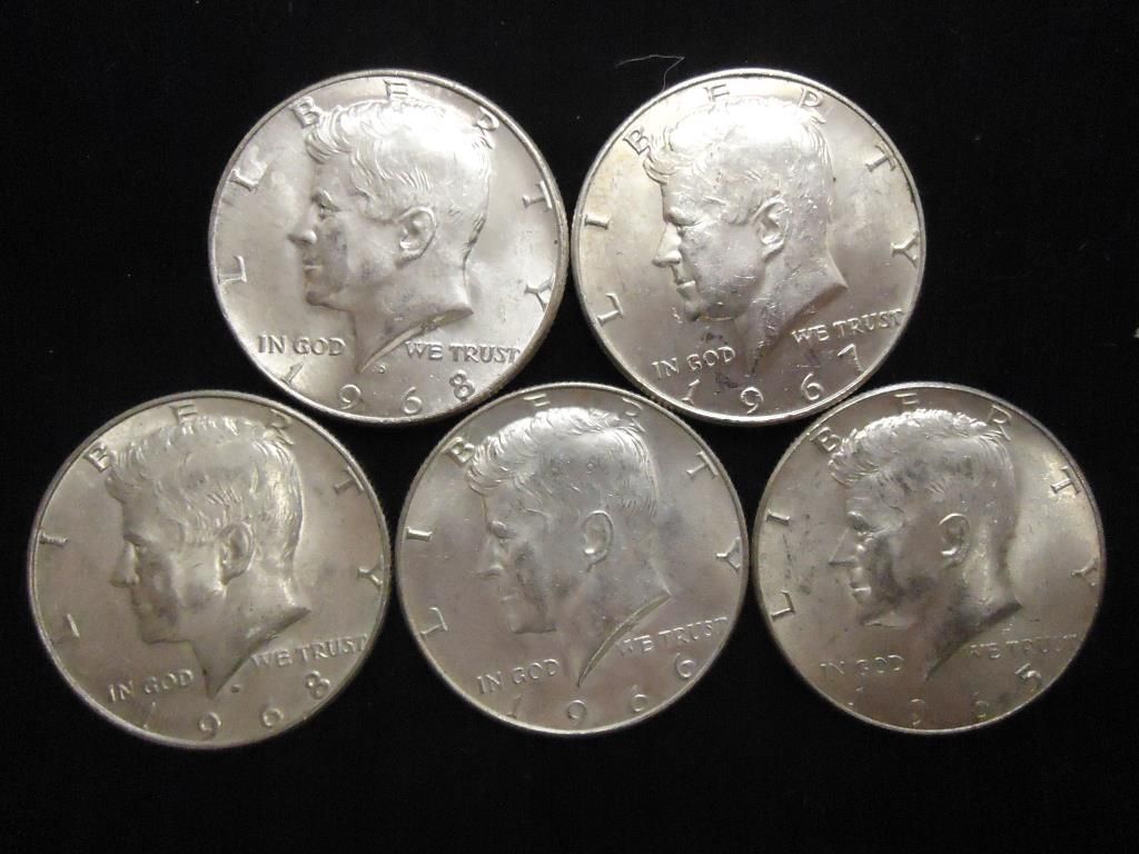 5 ASSORTED 40% SILVER KENNEDY HALF DOLLARS