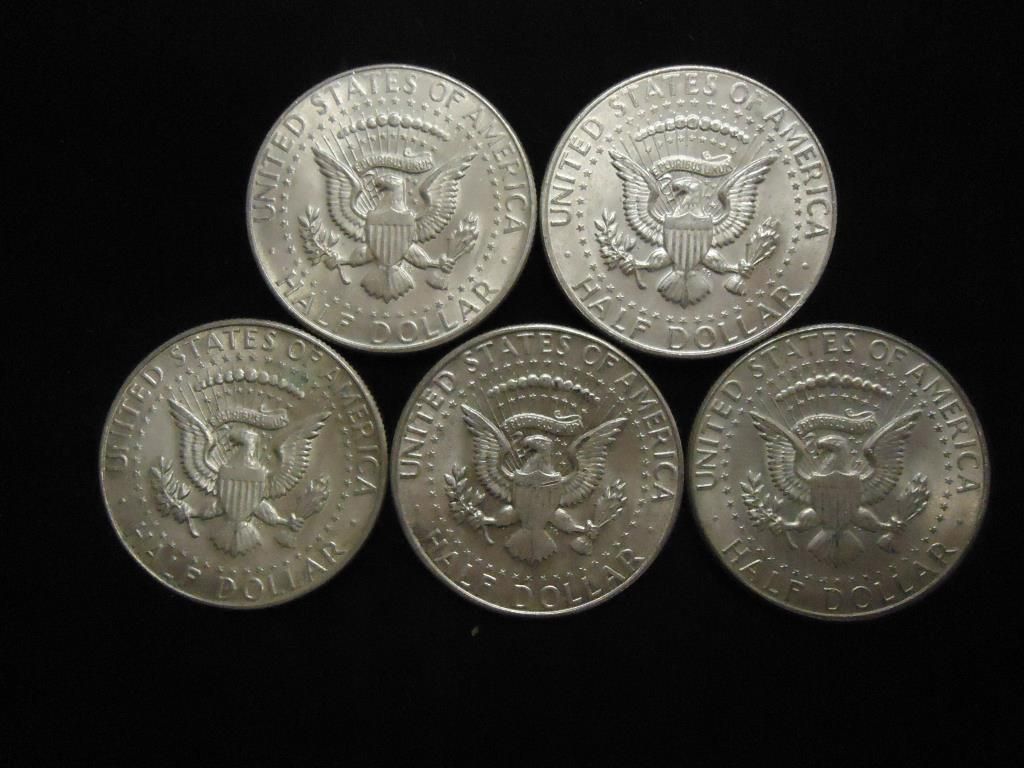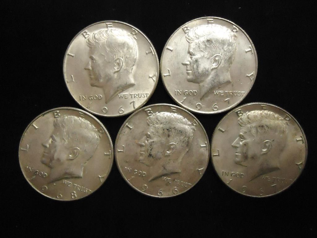 5 ASSORTED 40% SILVER KENNEDY HALF DOLLARS