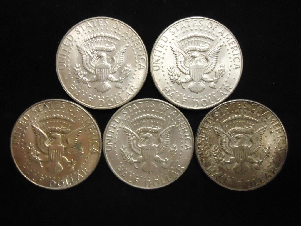 5 ASSORTED 40% SILVER KENNEDY HALF DOLLARS