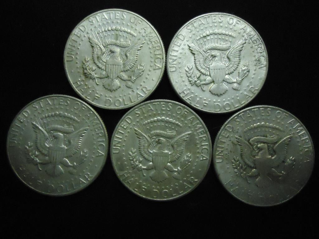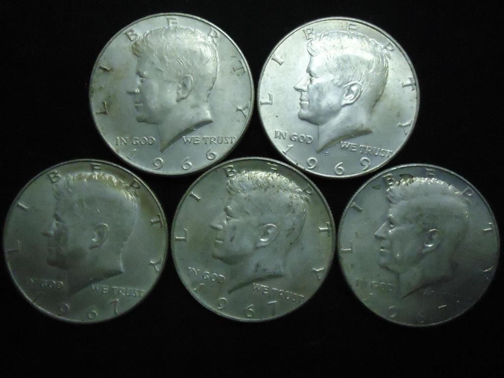 5 ASSORTED 40% SILVER KENNEDY HALF DOLLARS
