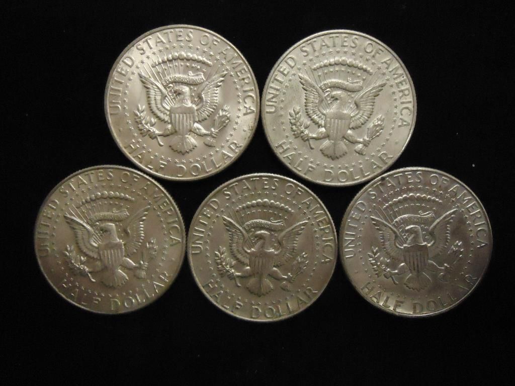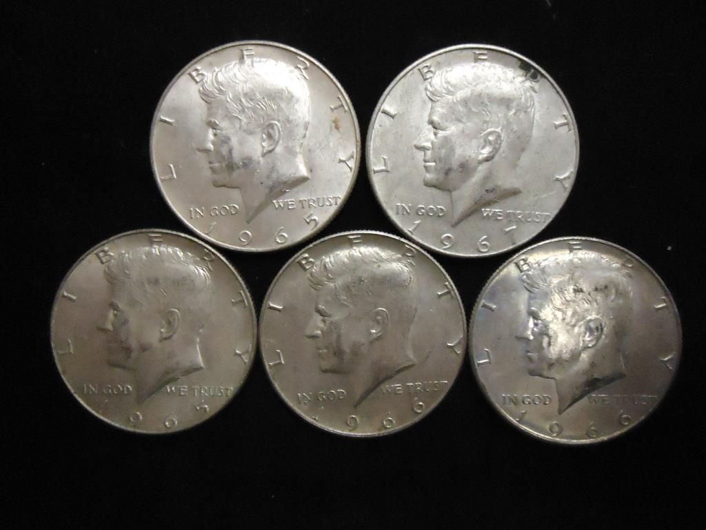 5 ASSORTED 40% SILVER KENNEDY HALF DOLLARS