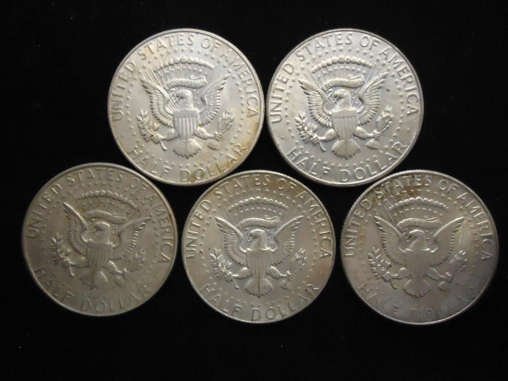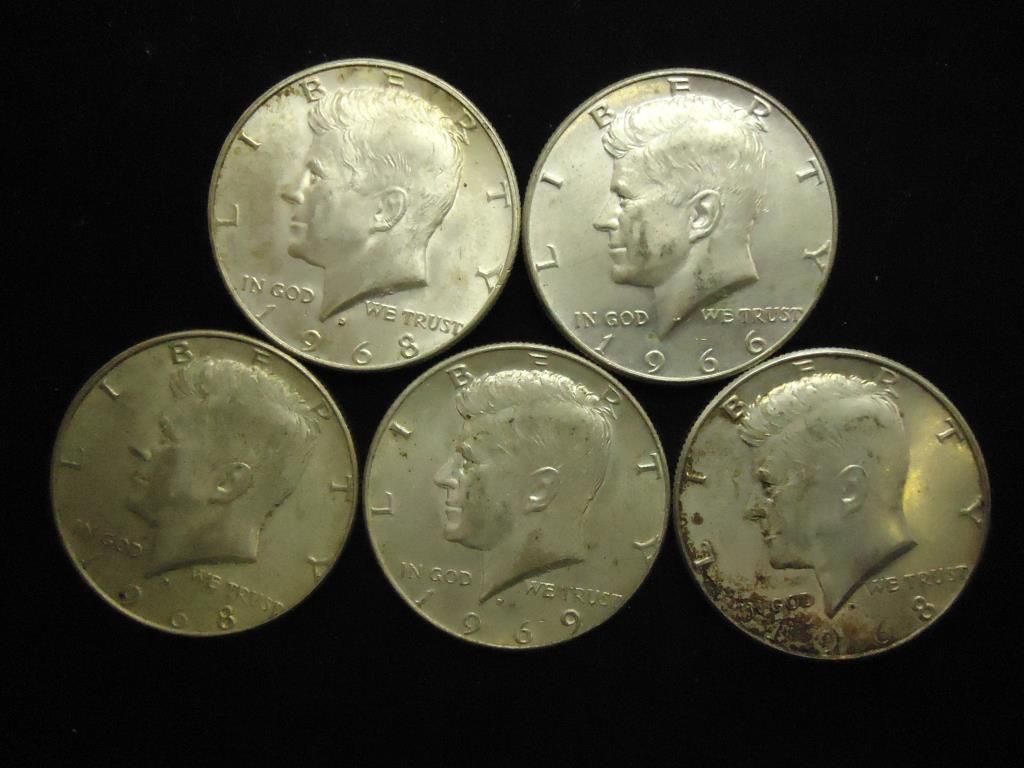 5 ASSORTED 40% SILVER KENNEDY HALF DOLLARS