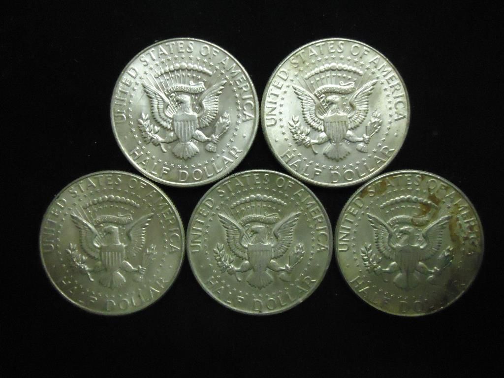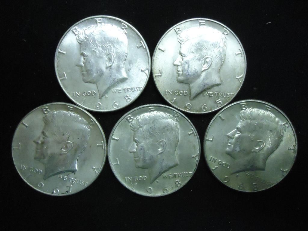 5 ASSORTED 40% SILVER KENNEDY HALF DOLLARS